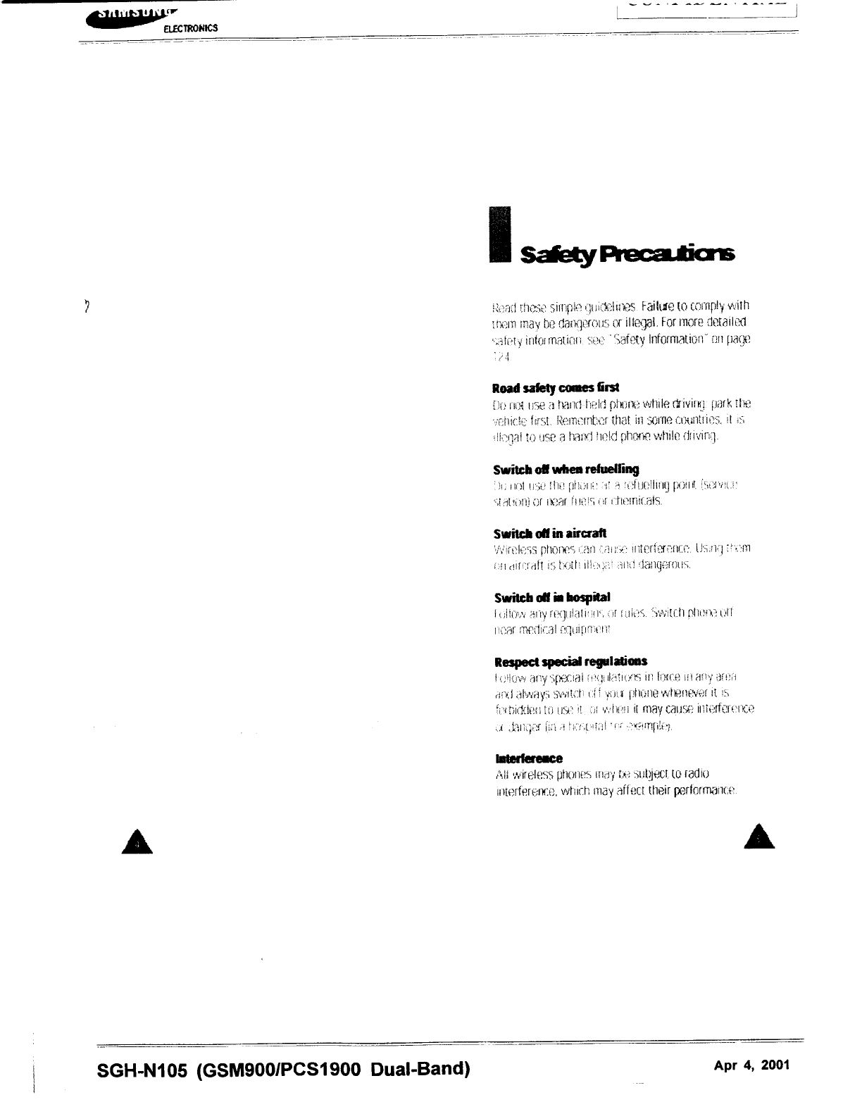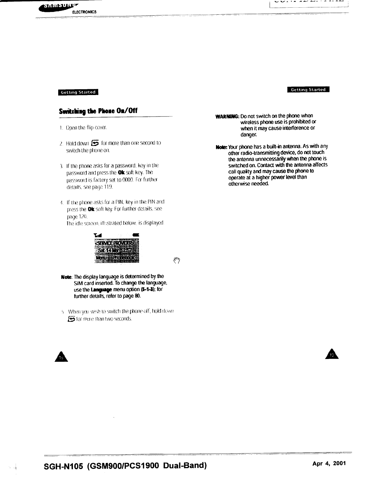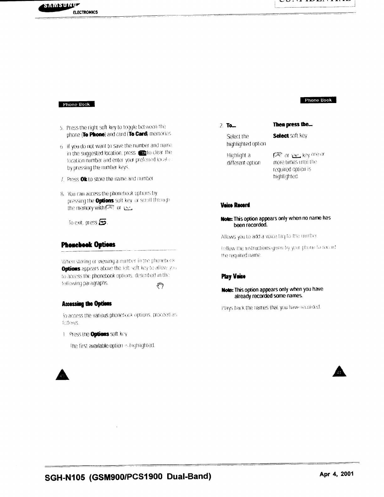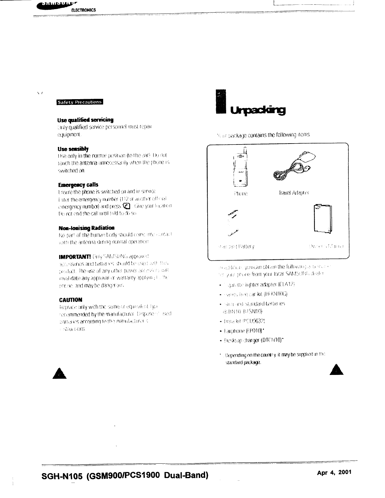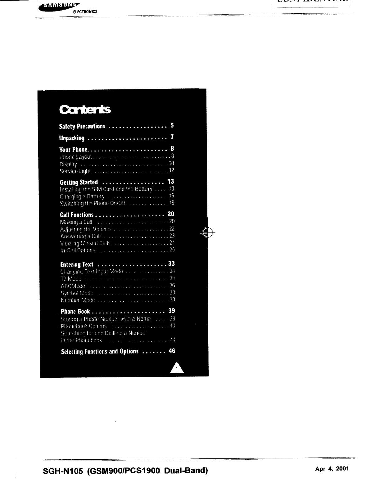 Samsung Electronics Co SGHN105 Single-Band PCS Only Phone User Manual Section 1