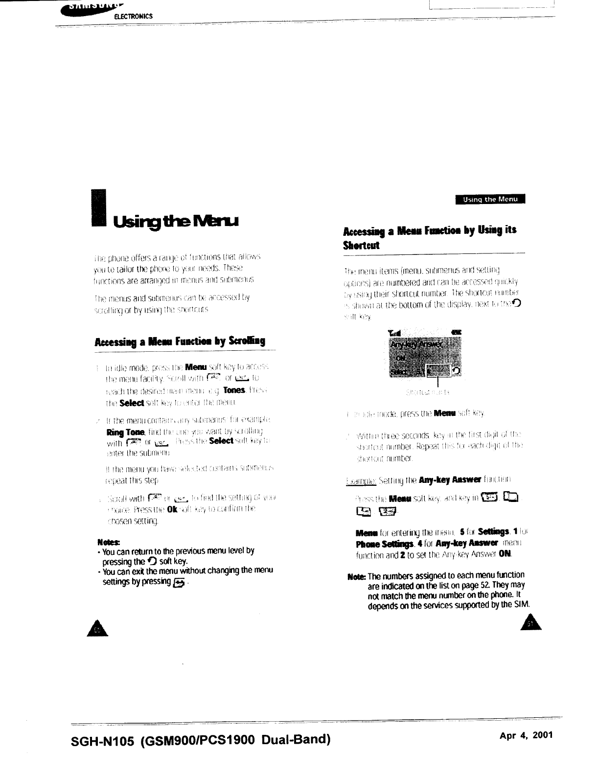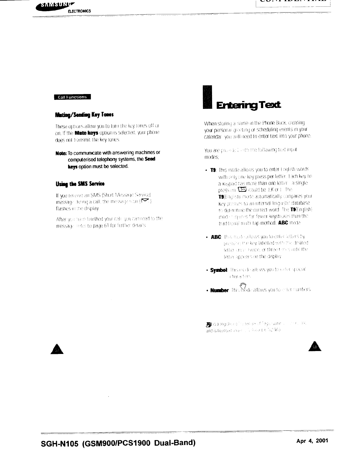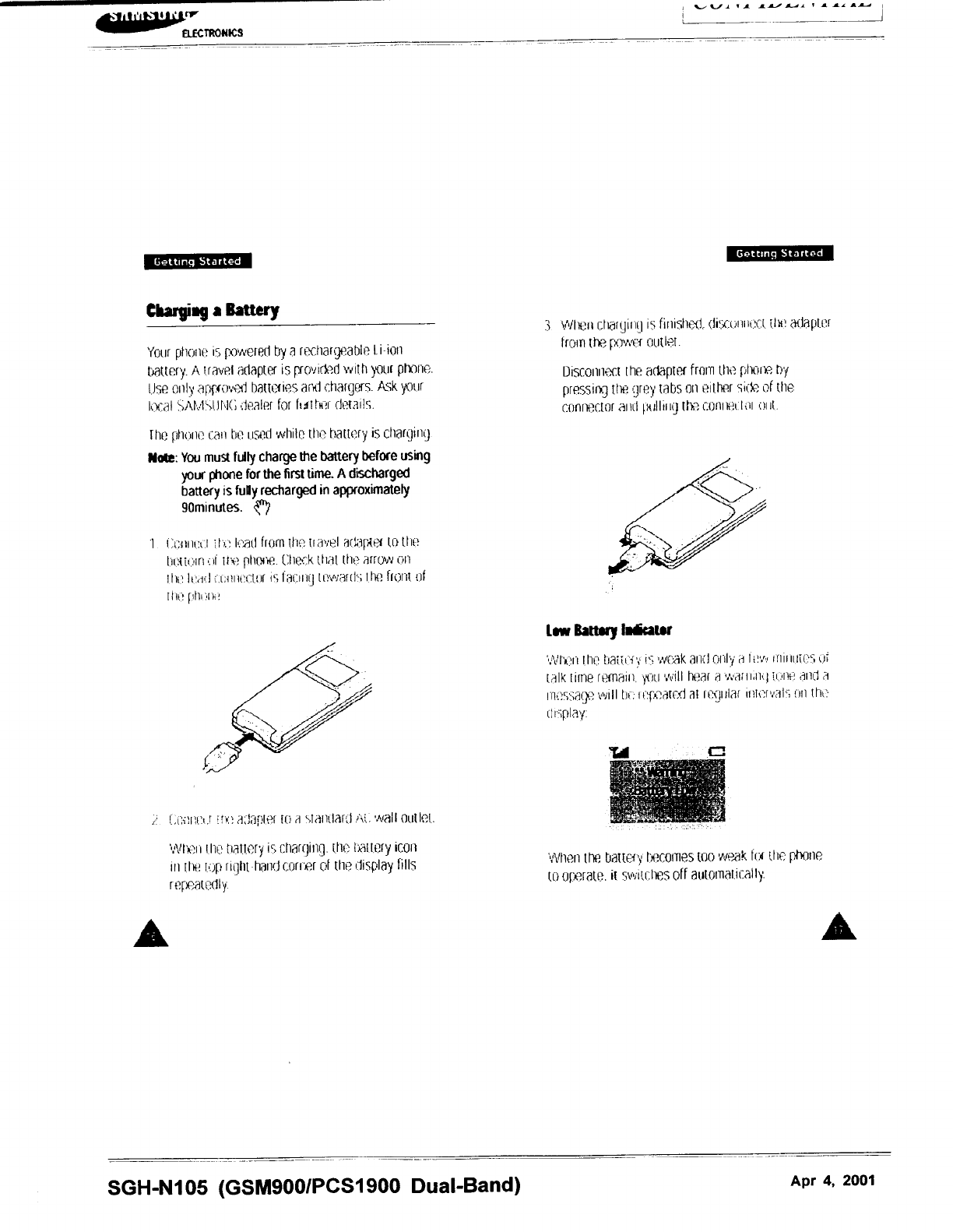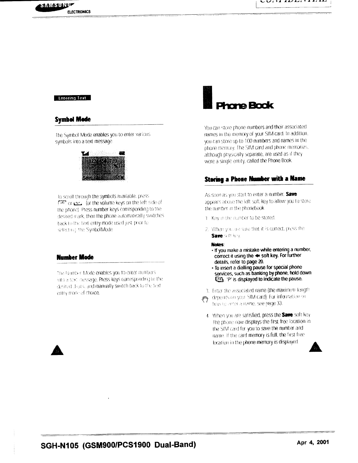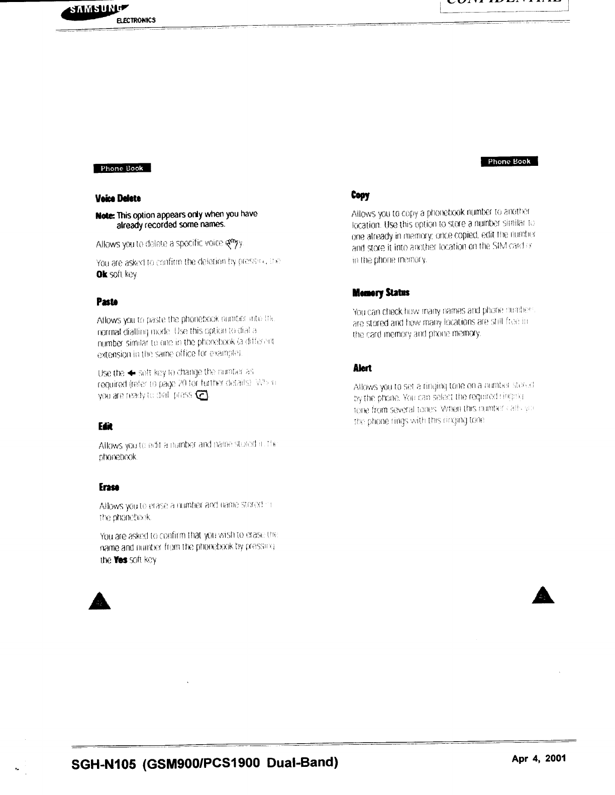 Samsung Electronics Co SGHN105 Single-Band PCS Only Phone User Manual Section 1
