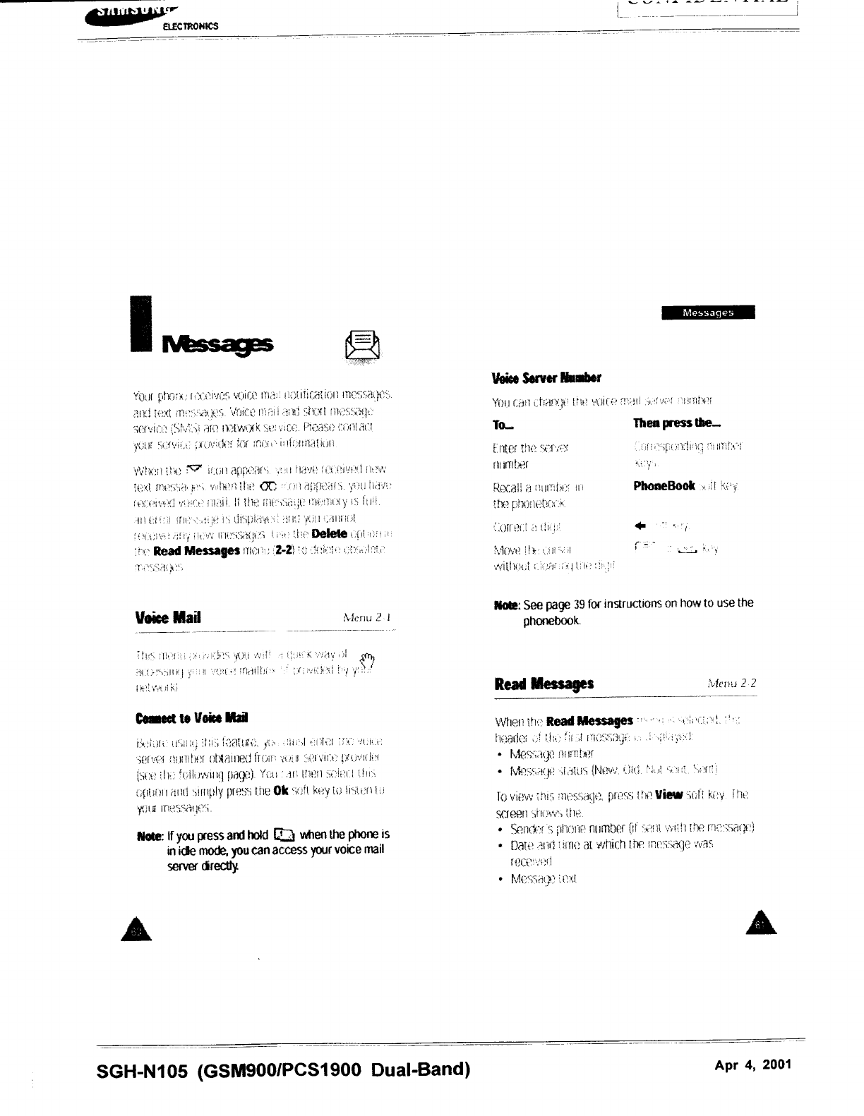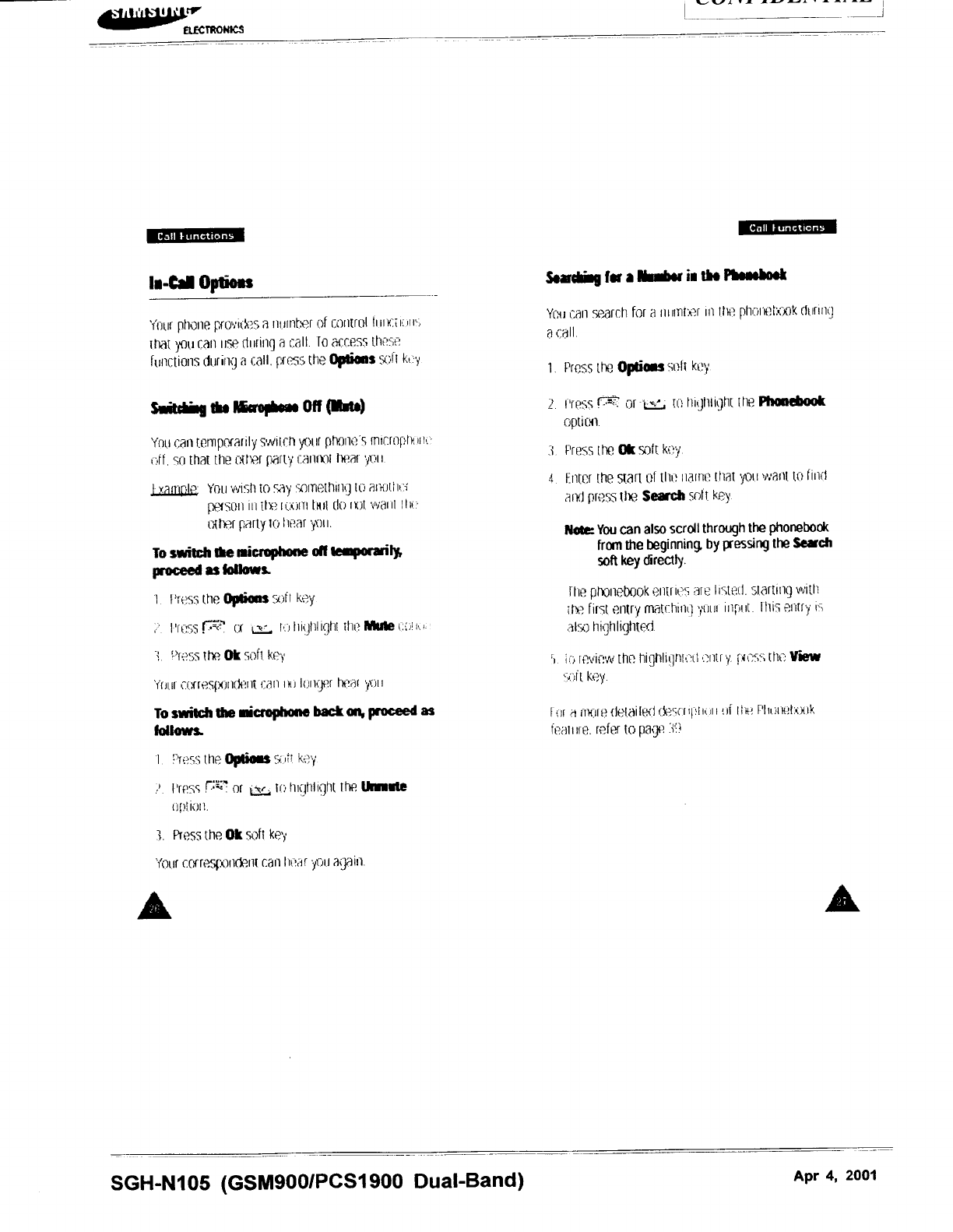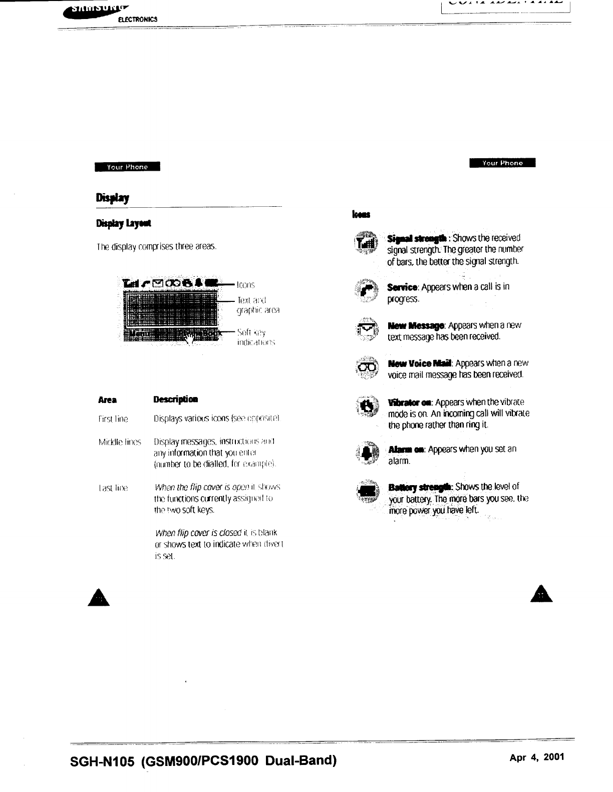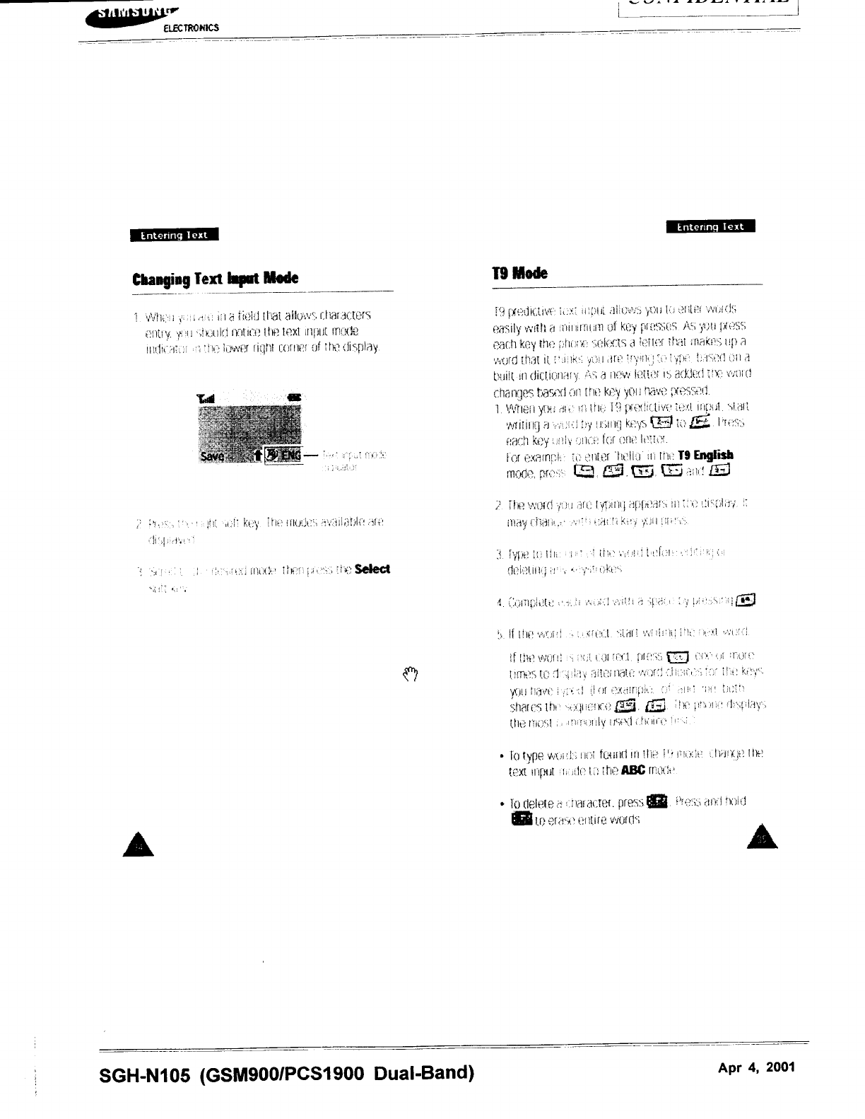 Samsung Electronics Co SGHN105 Single-Band PCS Only Phone User Manual Section 1