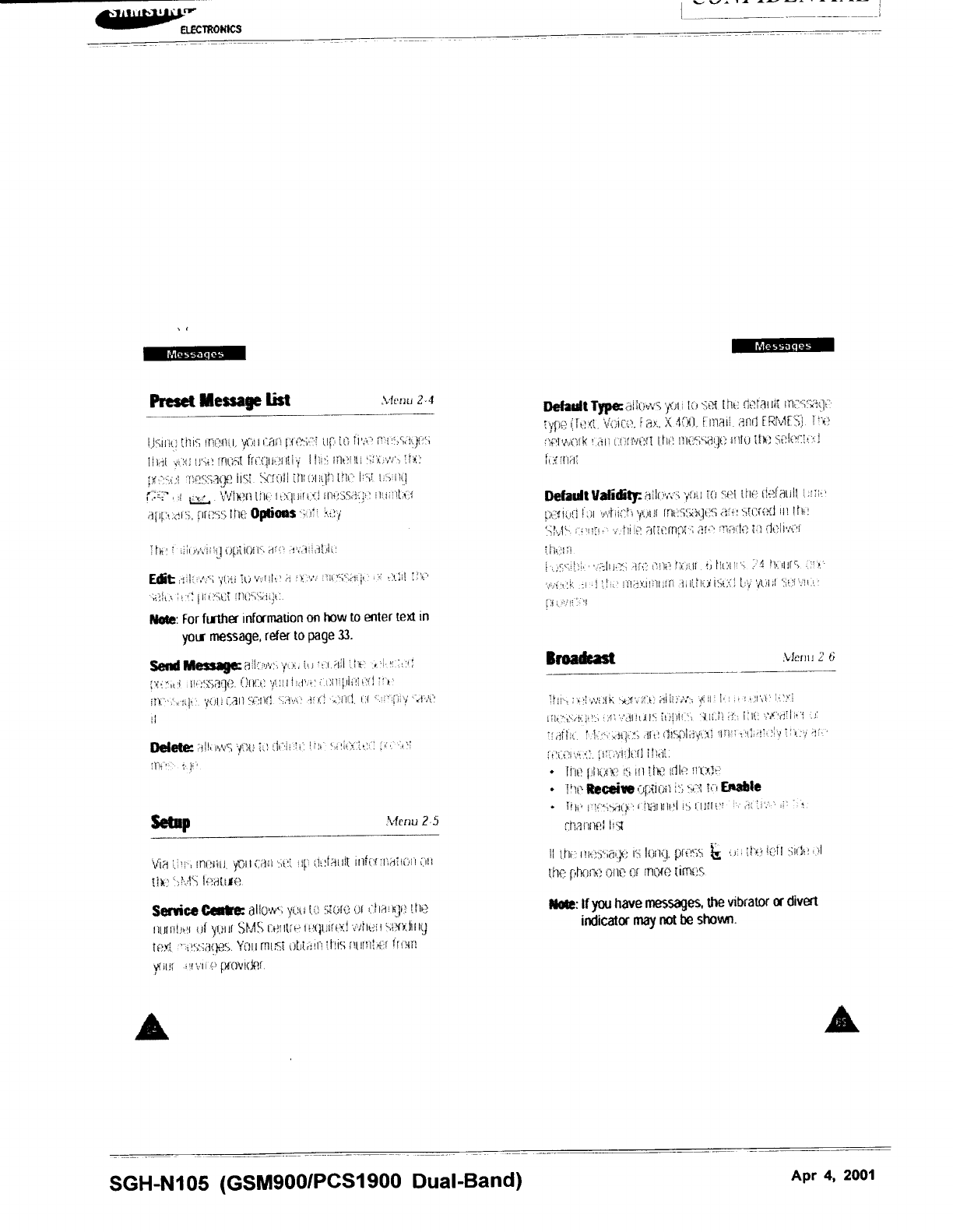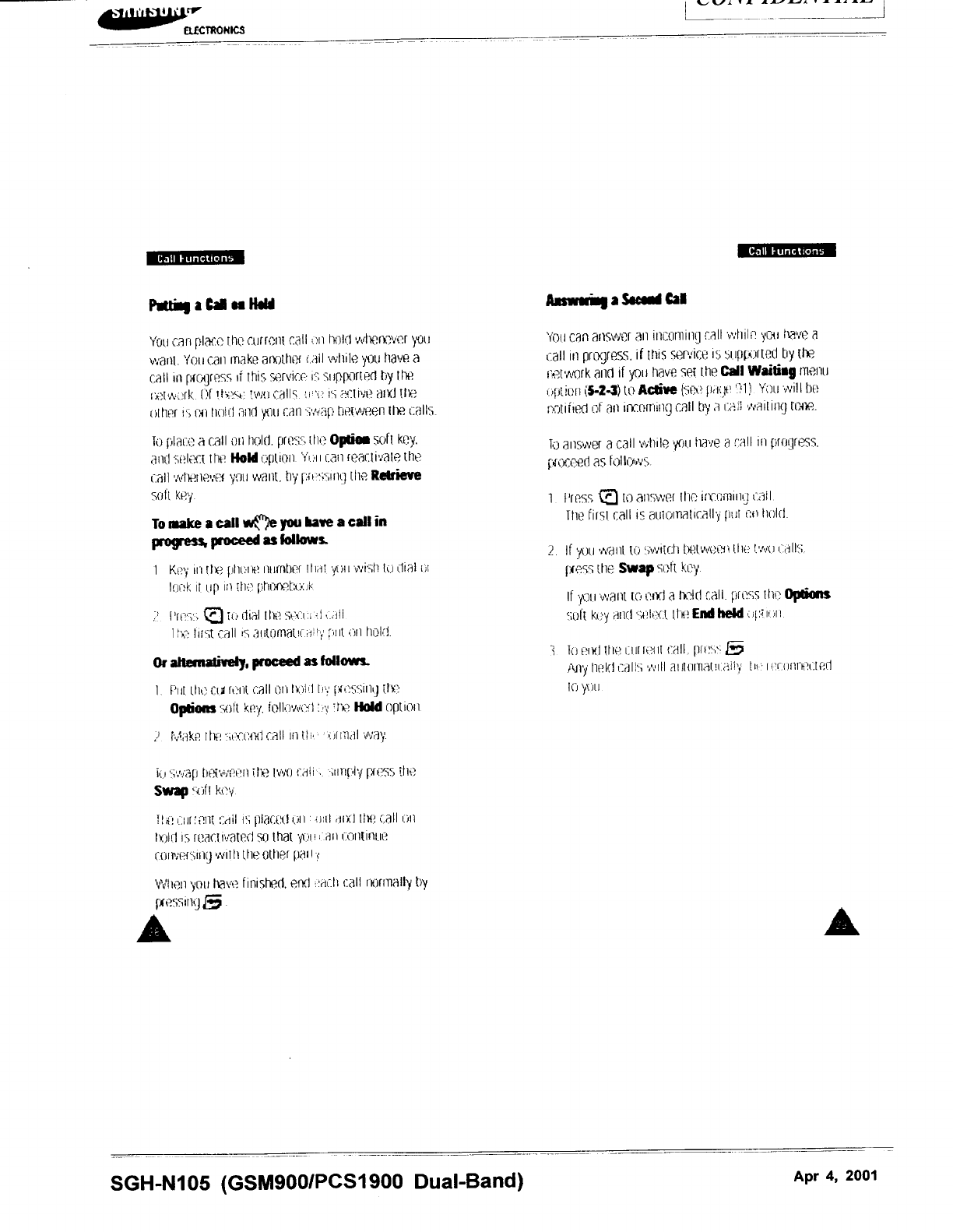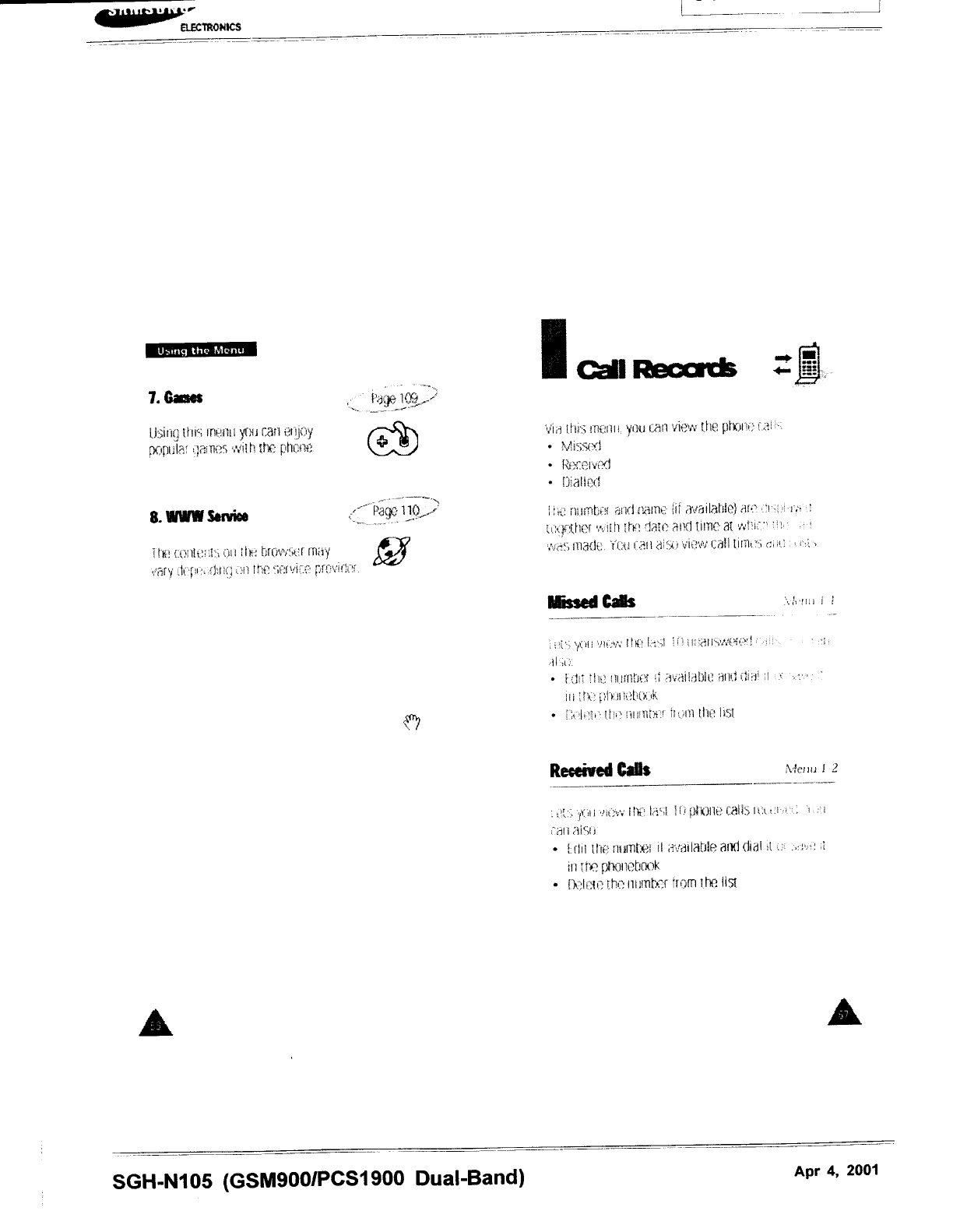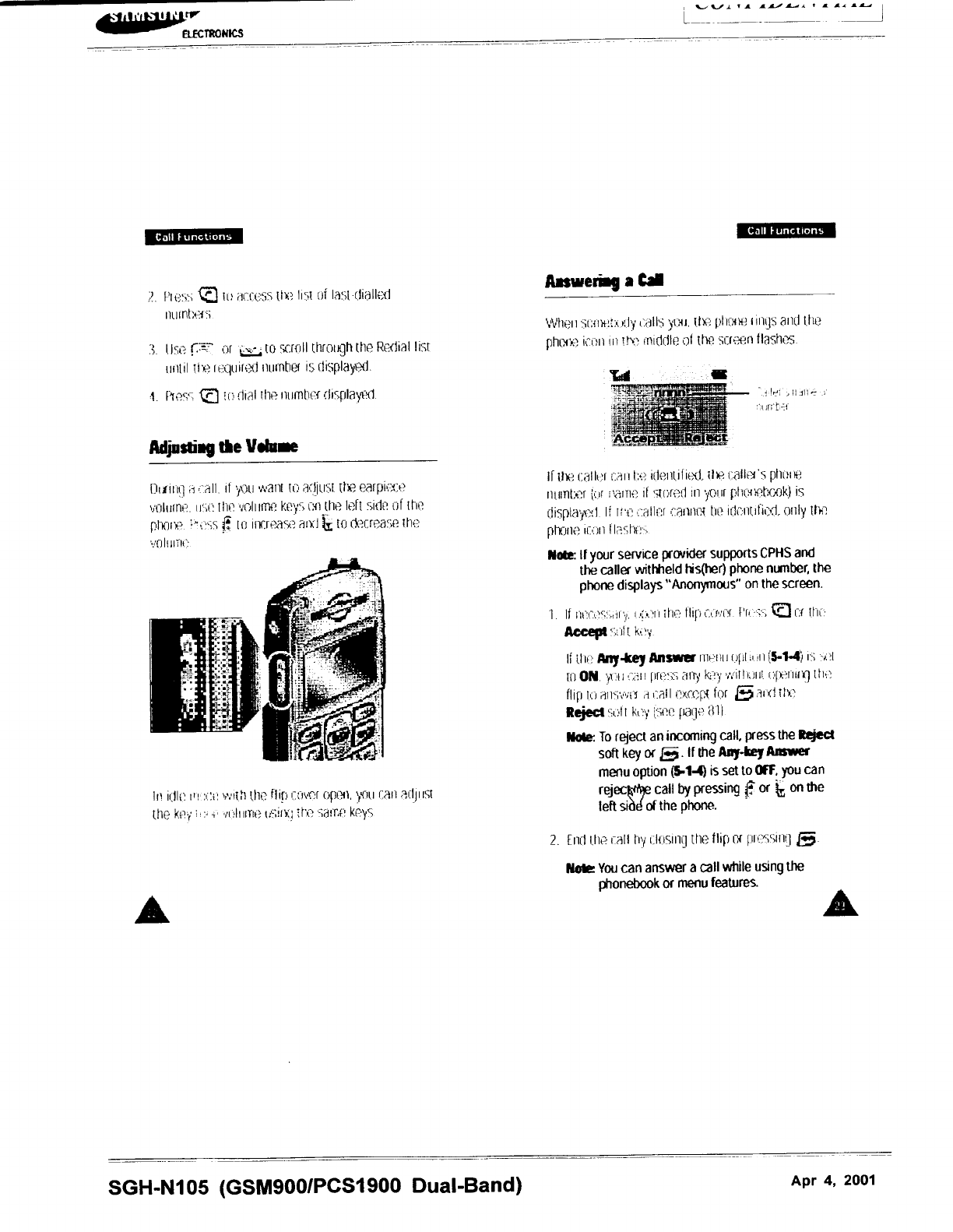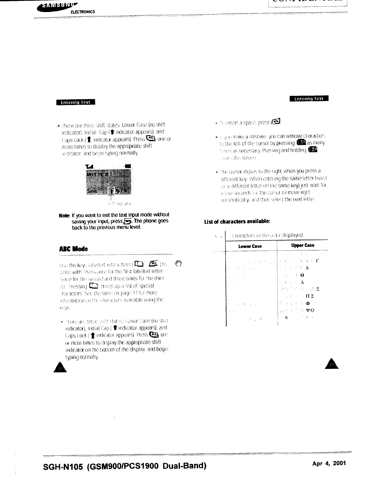 Samsung Electronics Co SGHN105 Single-Band PCS Only Phone User Manual Section 1