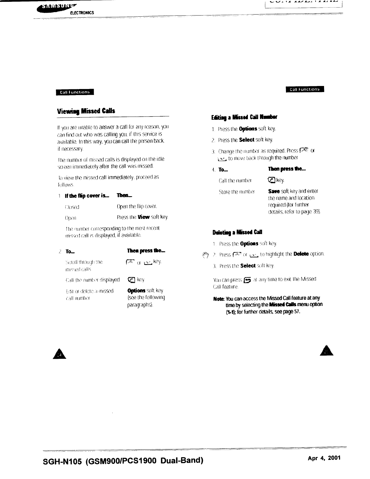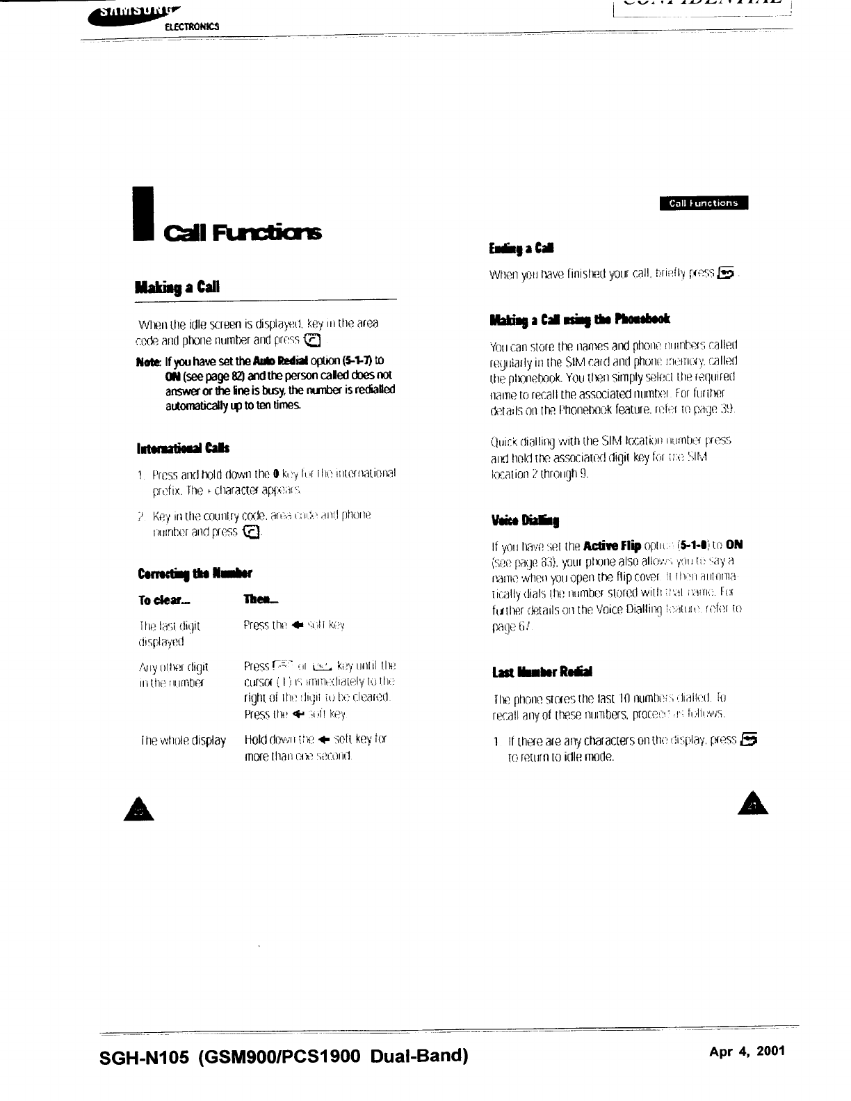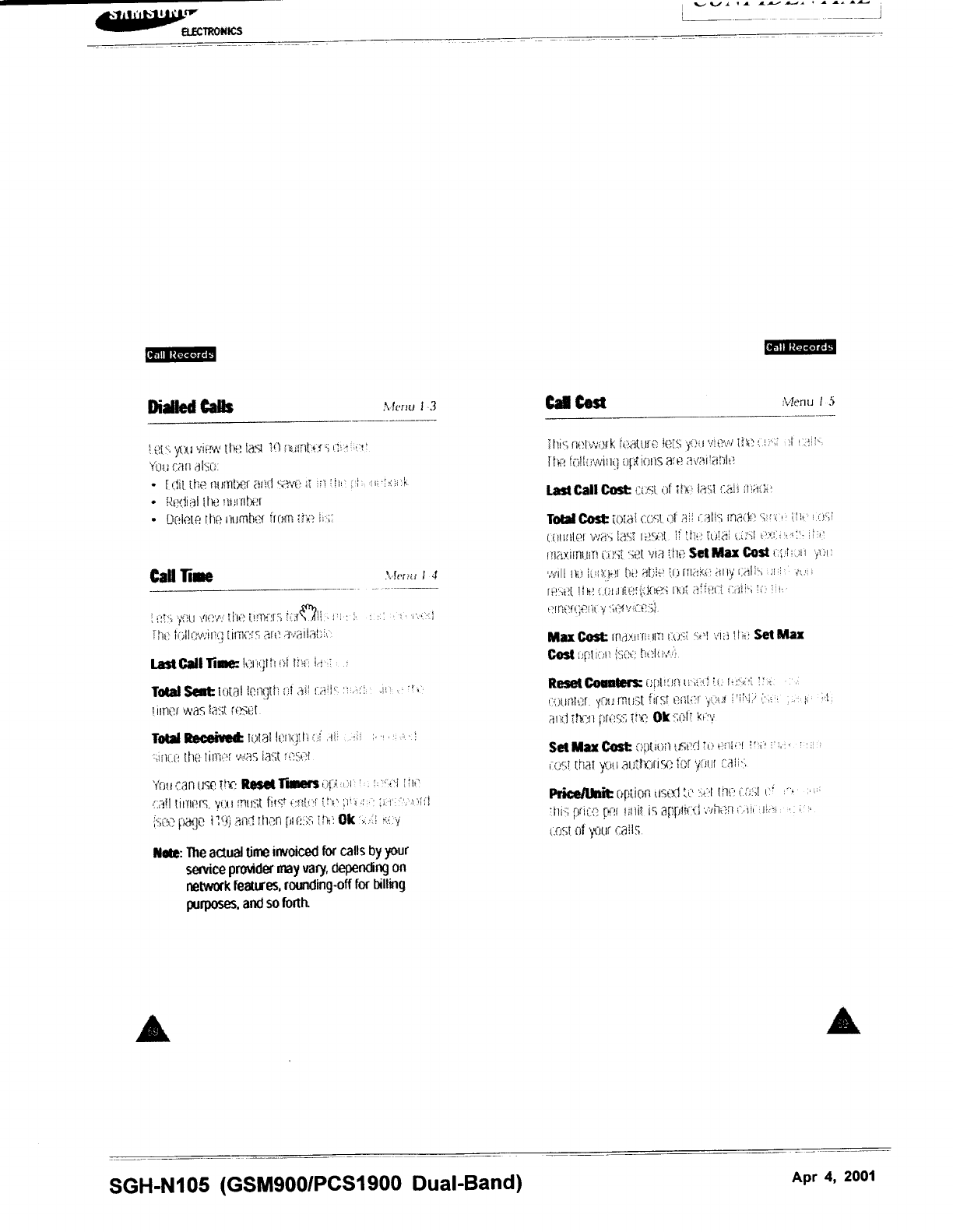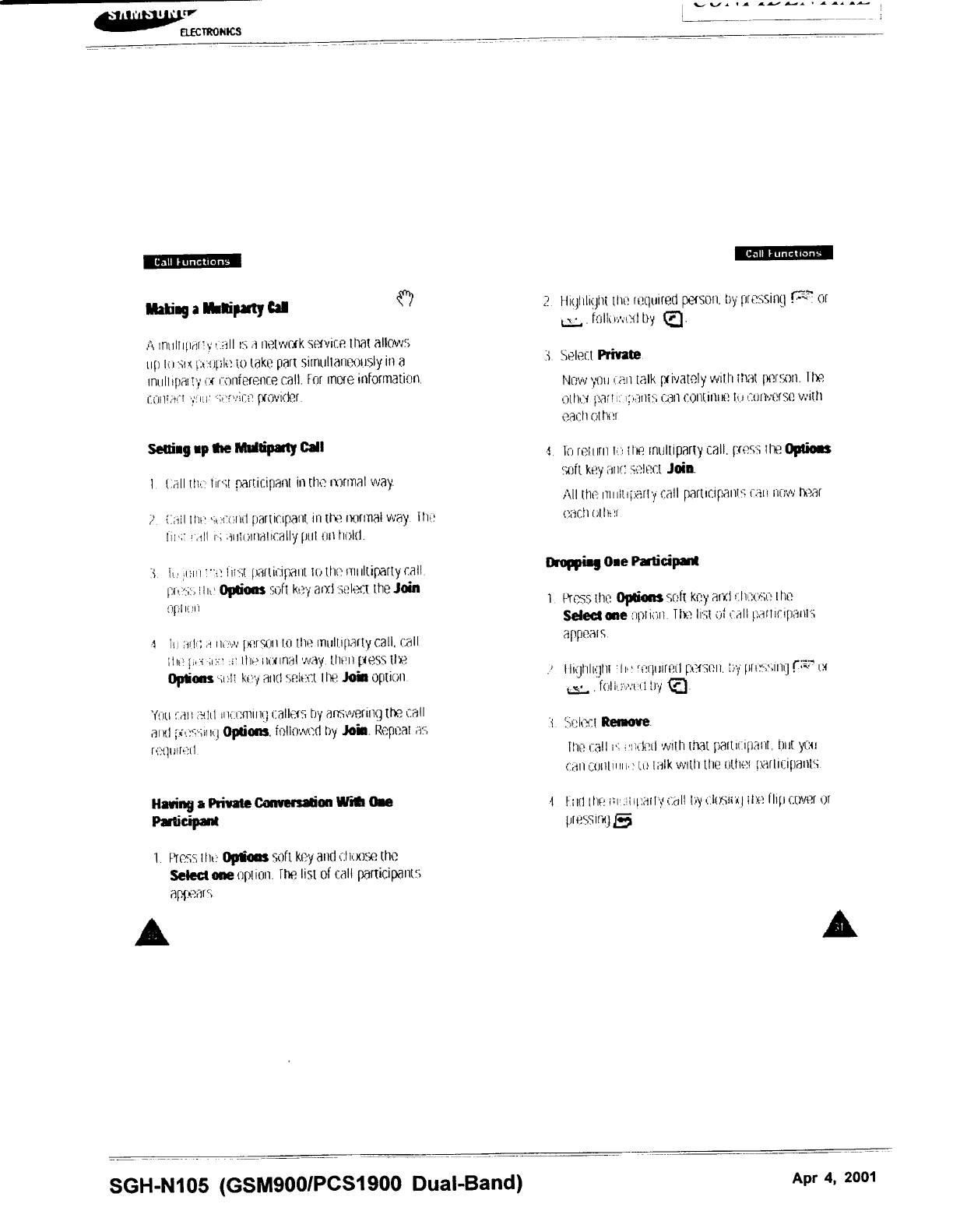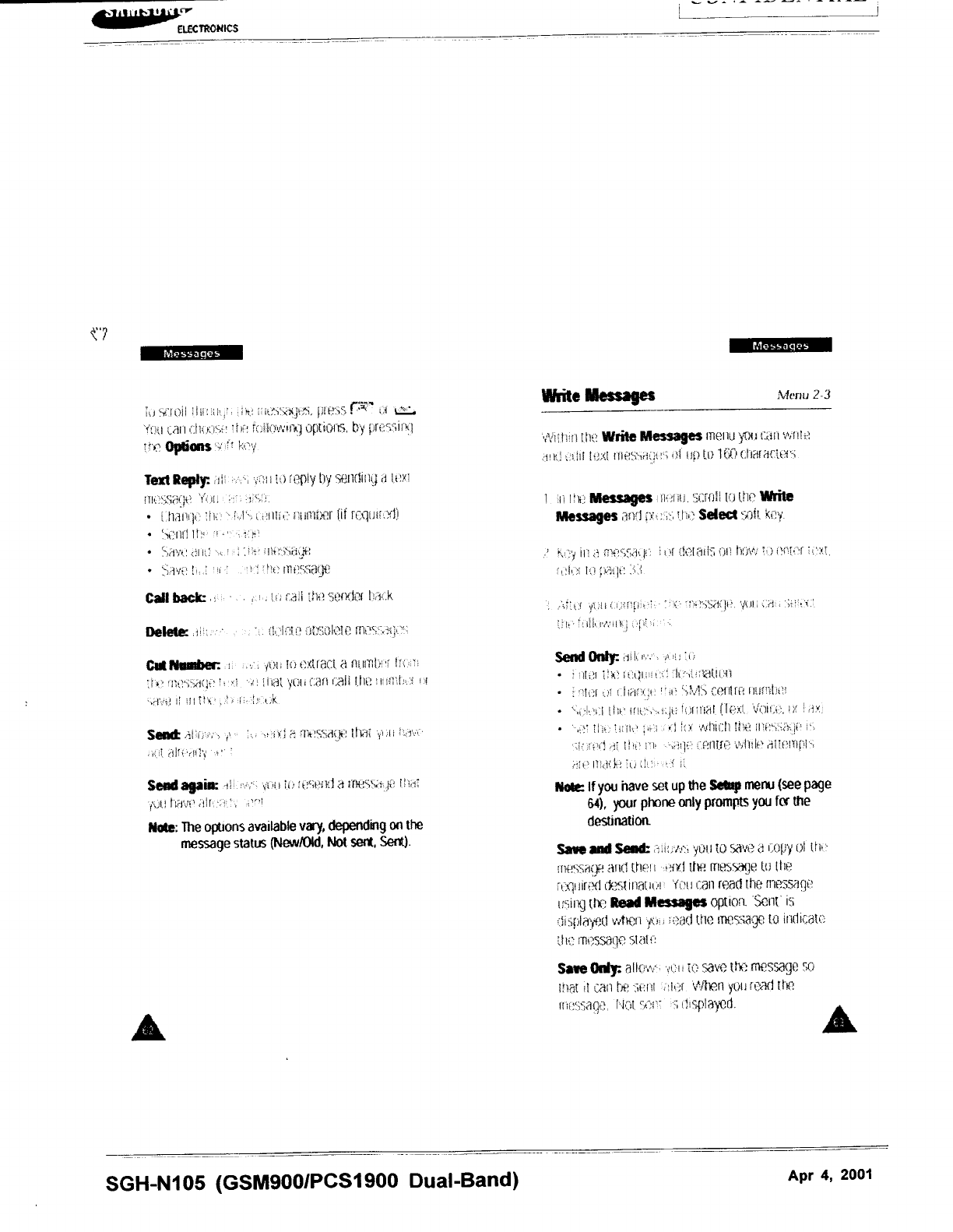 Samsung Electronics Co SGHN105 Single-Band PCS Only Phone User Manual Section 1