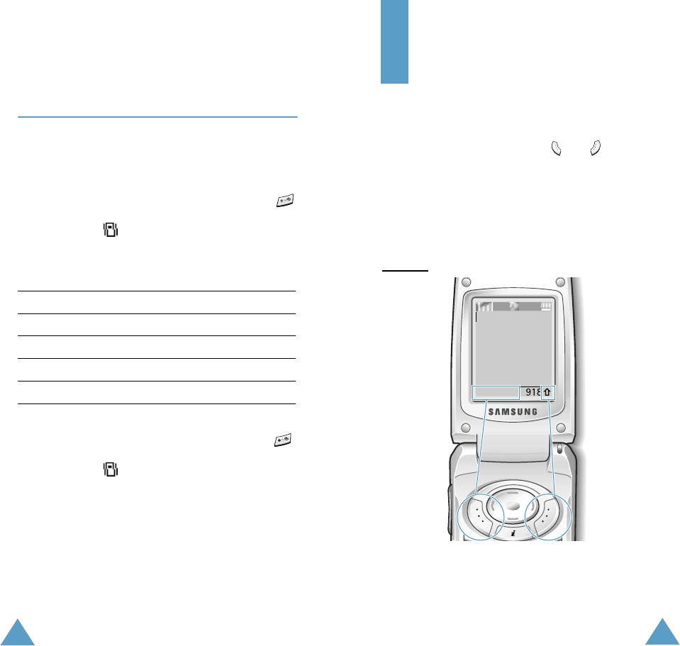 • Each of the two soft keys ( and )