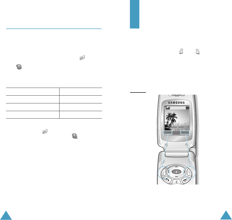 • Each of the two soft keys ( and