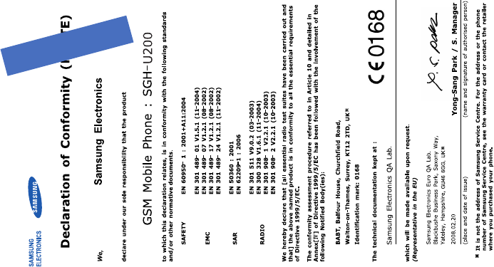 Samsung Electronics Co SGHU200 Cellular/PCS GSM/EDGE Phone with Bluetooth User Manual