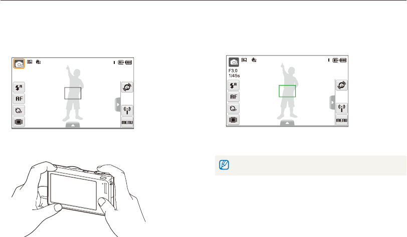 If the camera fails to fix the focus, the focus frame will change to a red t