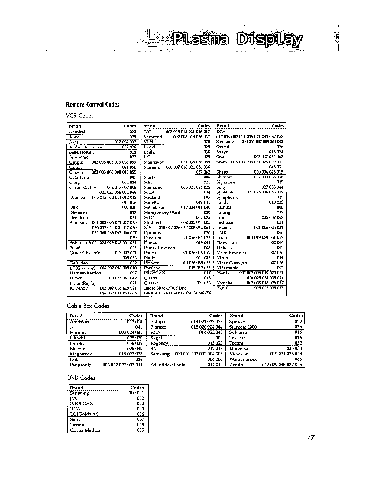 Samsung Electronics Co SH42P5 PDP TV Monitor User Manual