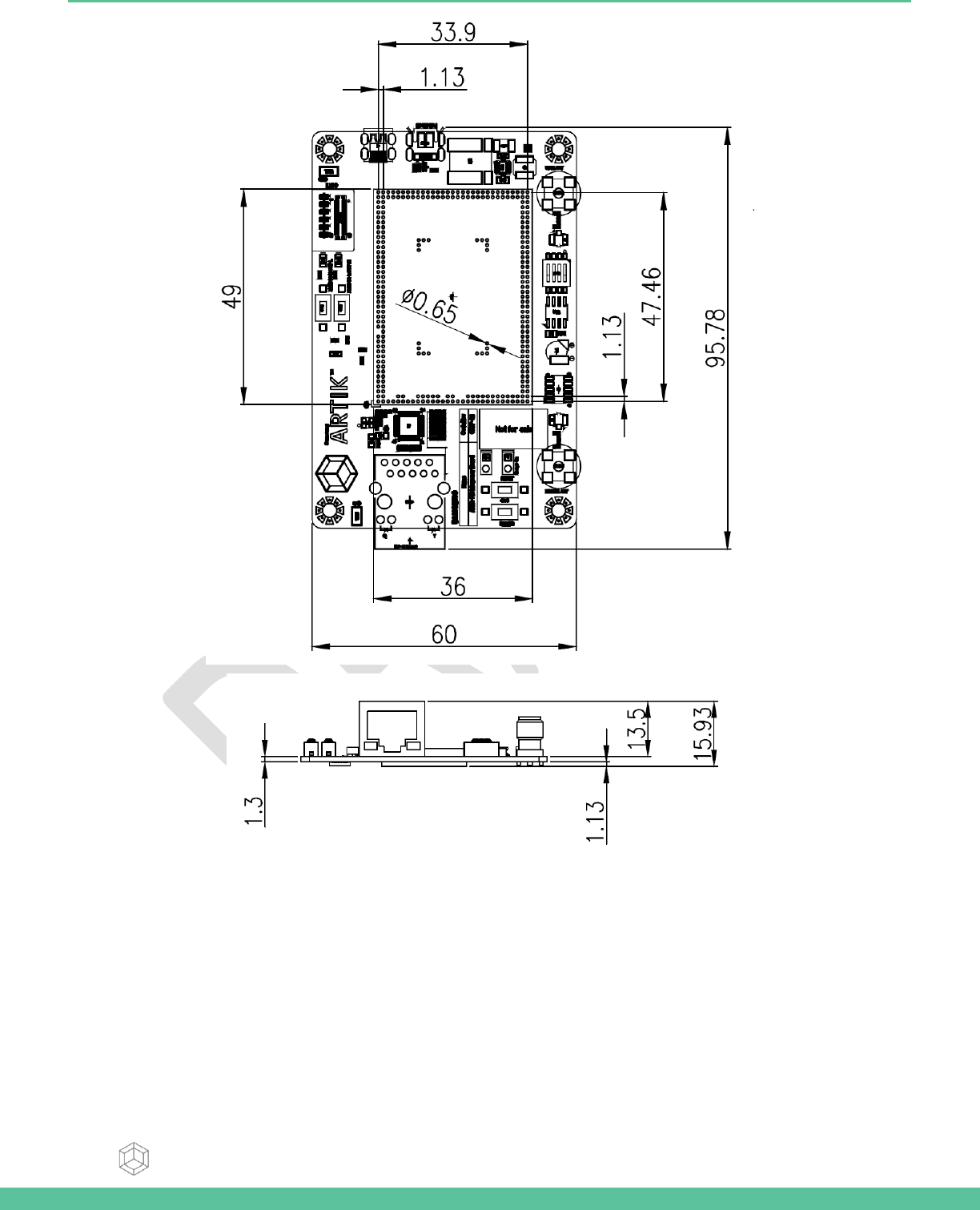 Figure 4. Mechanical Drawing ARTIK 530 Development Board Platform Board all dimensions are in [mm] ............. 9