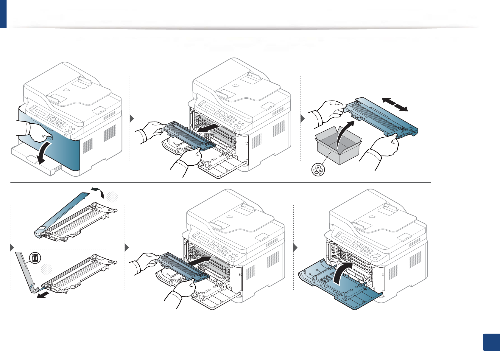 • Do not touch the green area of the imaging unit. Use the handle on the imaging unit to avoid touching this area.