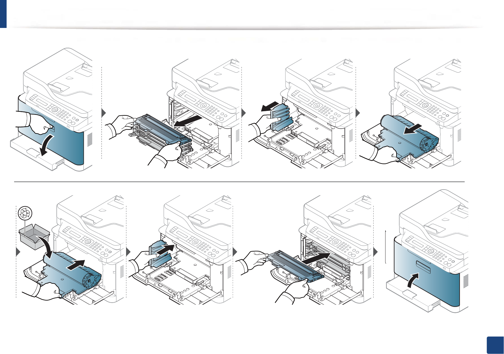 or smearing. Cleaning the inside of the machine clears and reduces these problems.