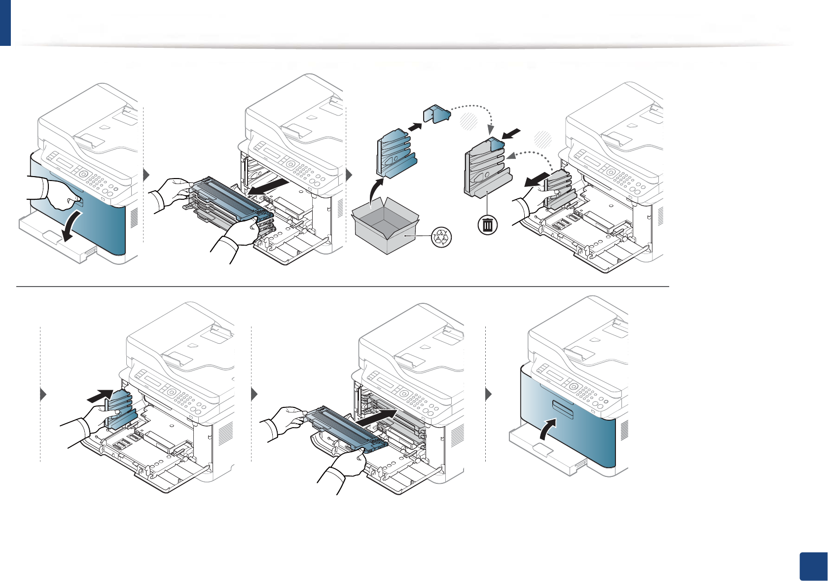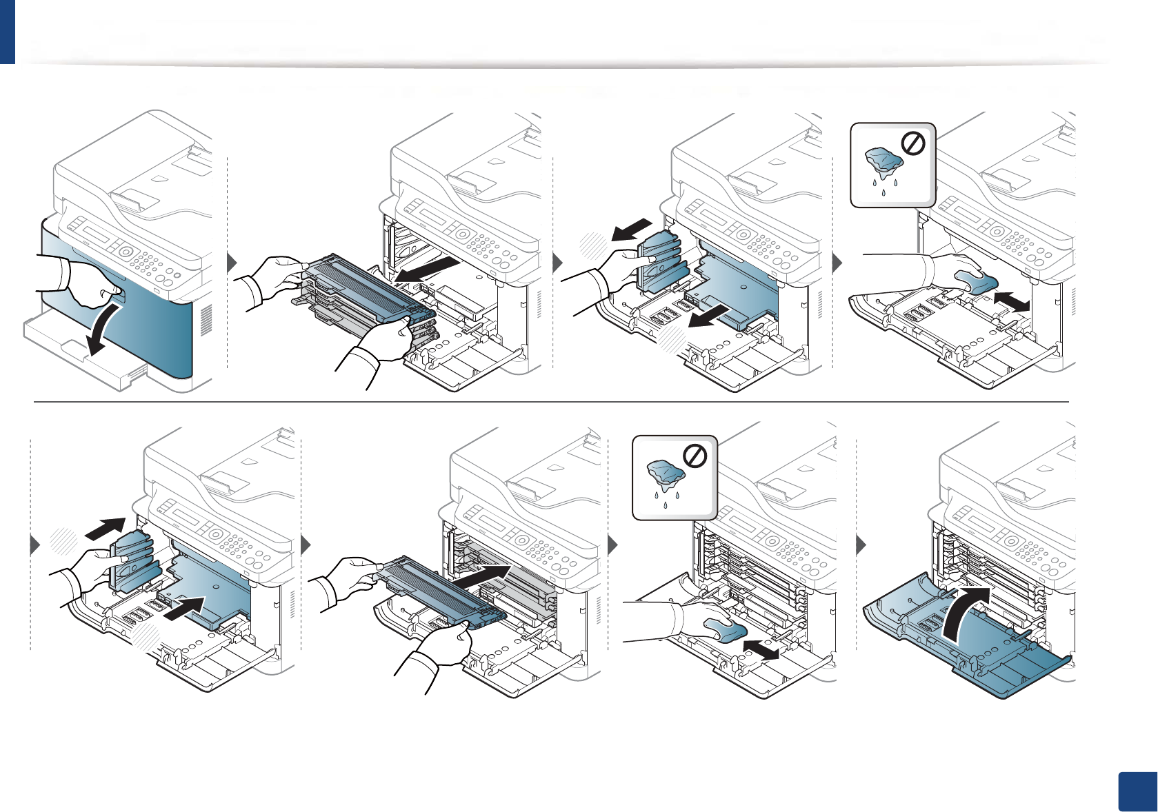 • If your machine or the surrounding area is contaminated with toner, we recommend you use a cloth or tissue dampened with water to clean it. If you use a vacuum