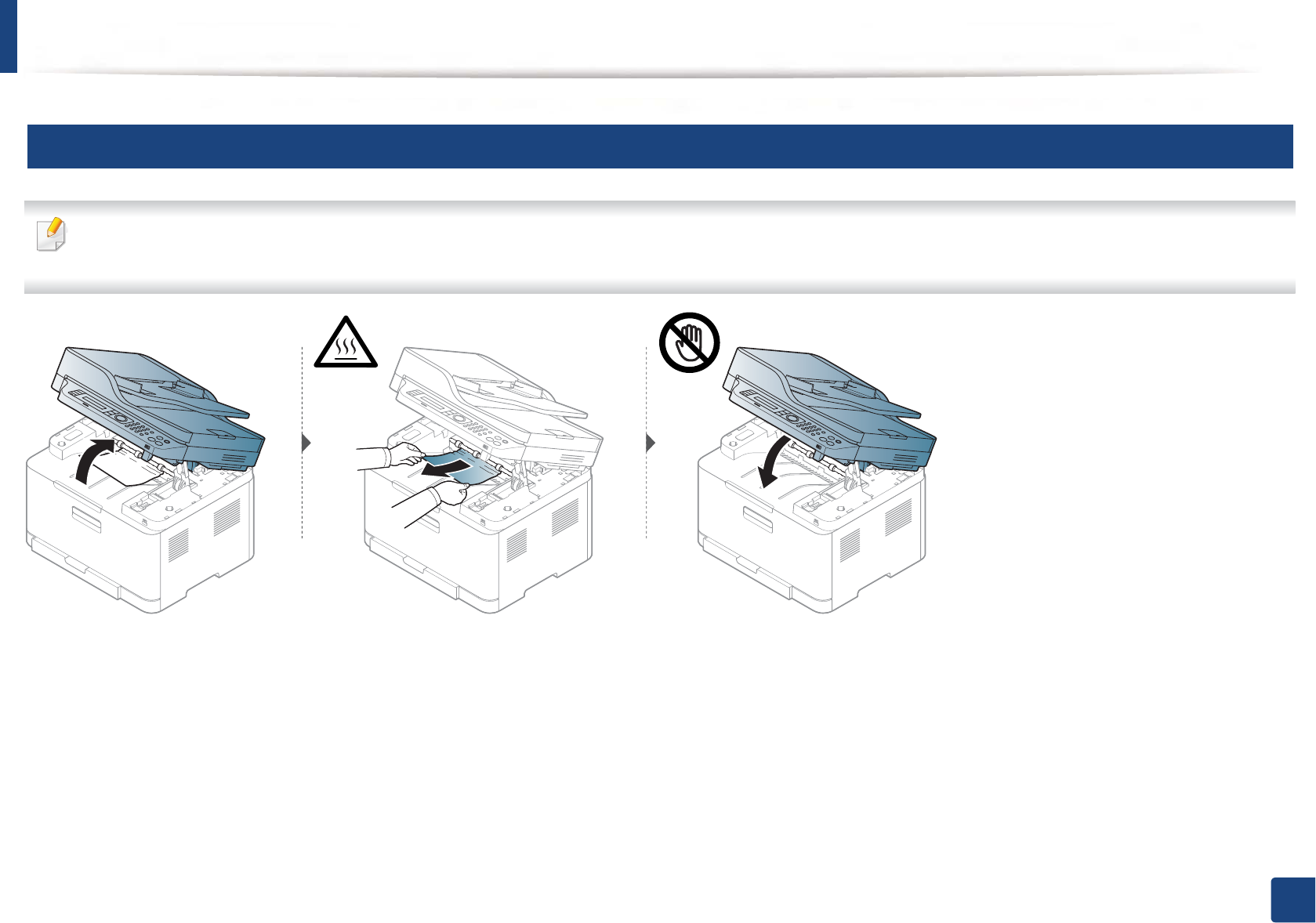 To avoid tearing the document, remove the jammed document slowly and carefully.