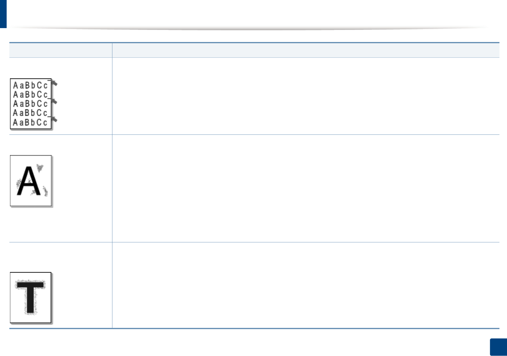 Toner smear • Clean the inside of the machine (see "Replacing the toner cartridge" on page 8).