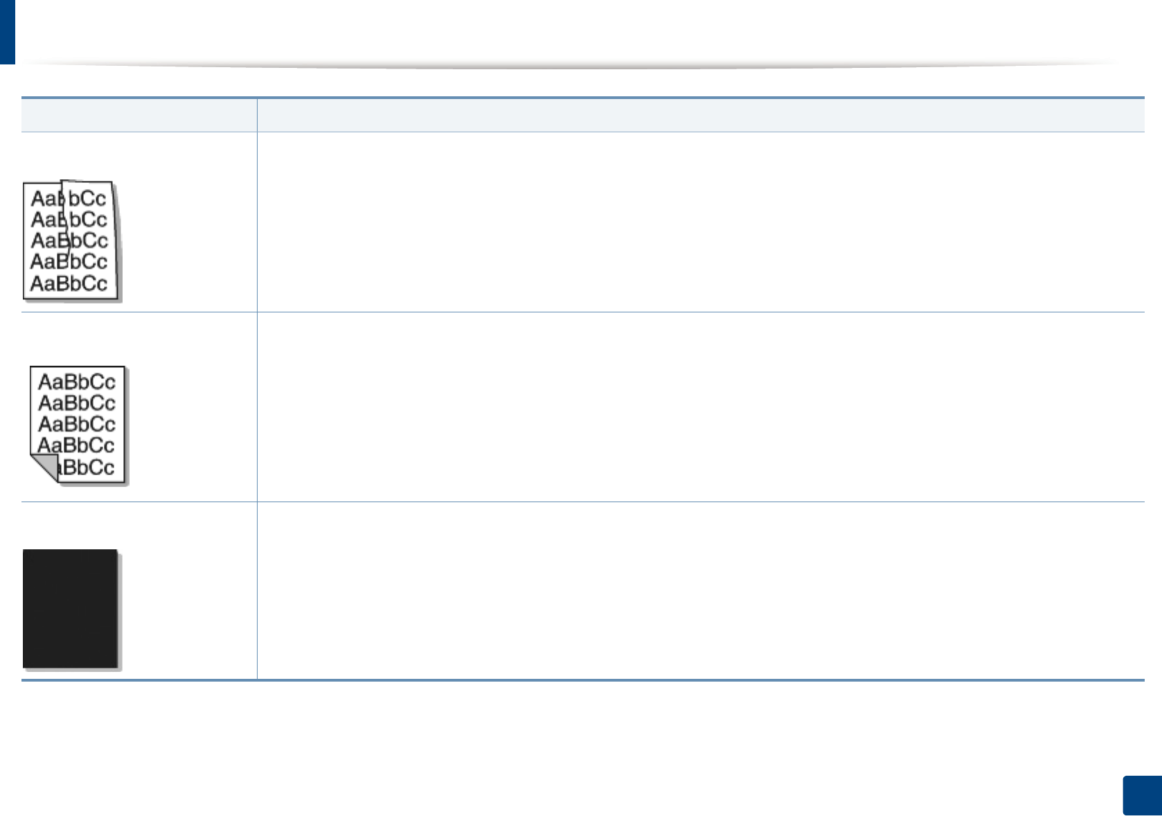 Solid color or black pages • The toner cartridge may not be installed properly. Remove the cartridge and reinsert it.