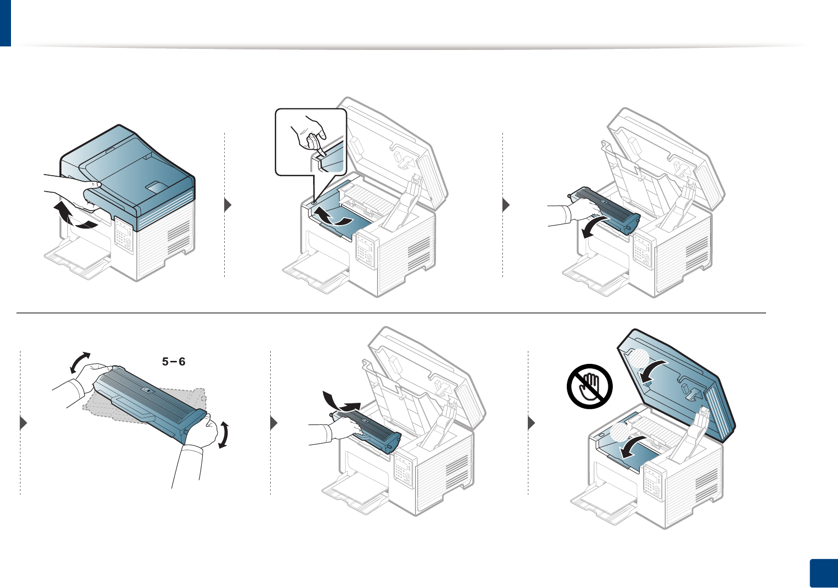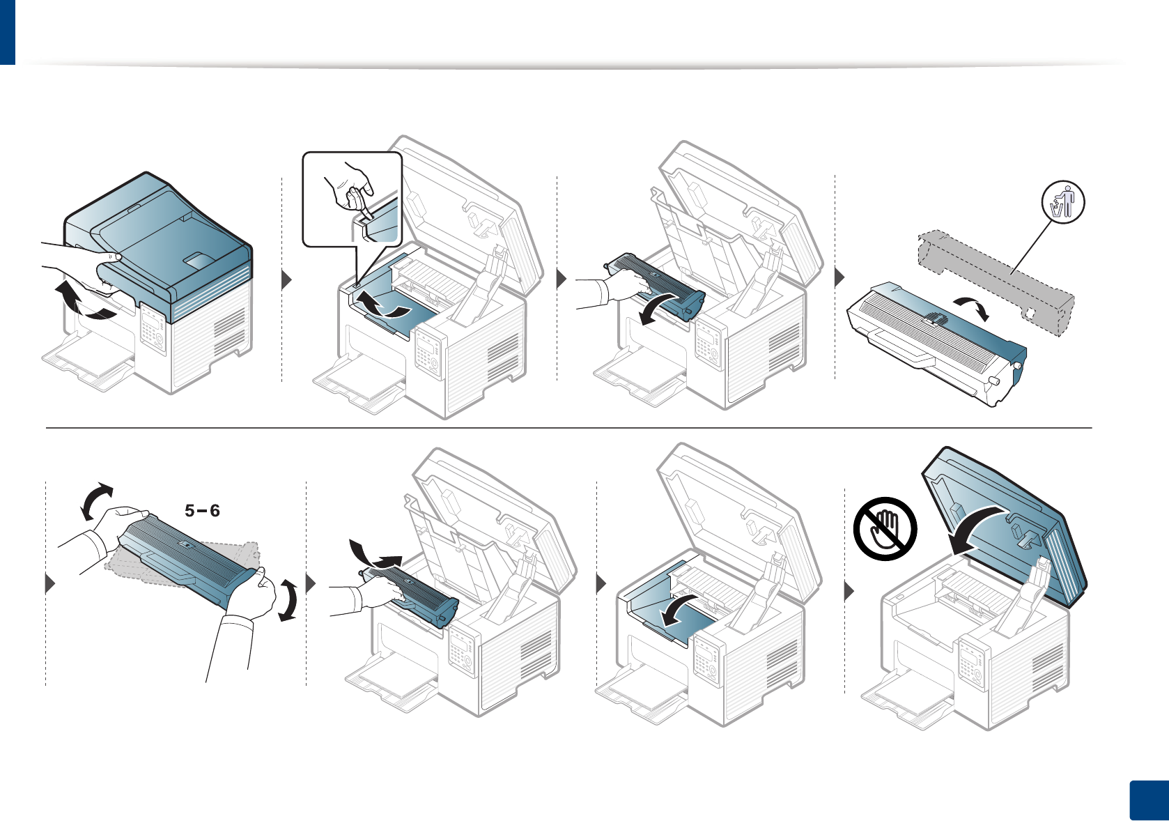 • If toner gets on your clothing, wipe it off with a dry cloth and wash clothing in cold water. Hot water sets toner into fabric.