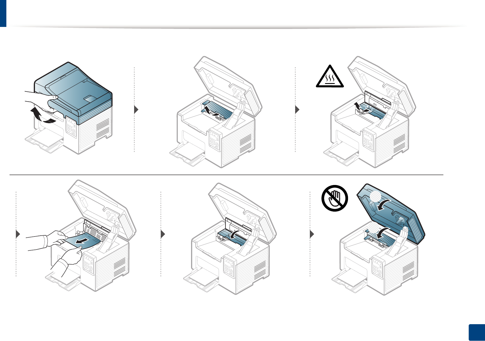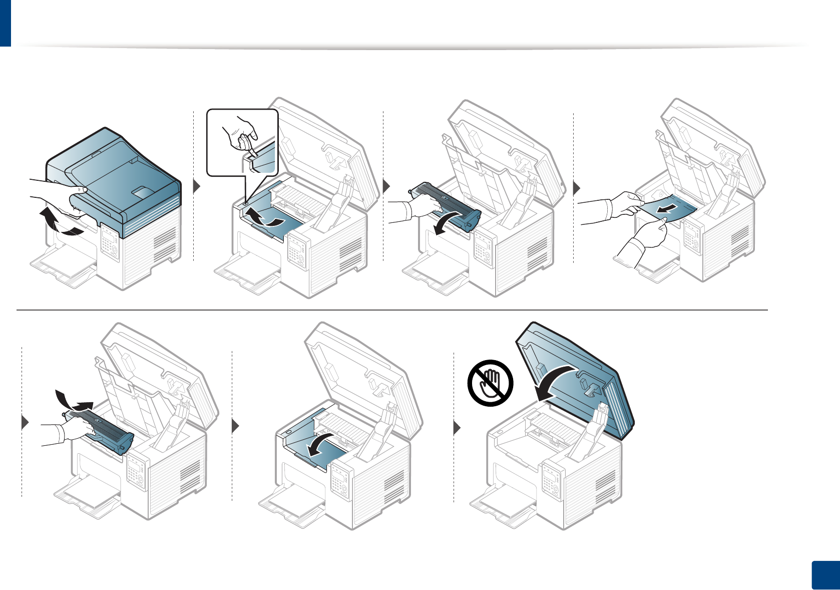 To avoid tearing the document, remove the jammed document slowly and carefully.