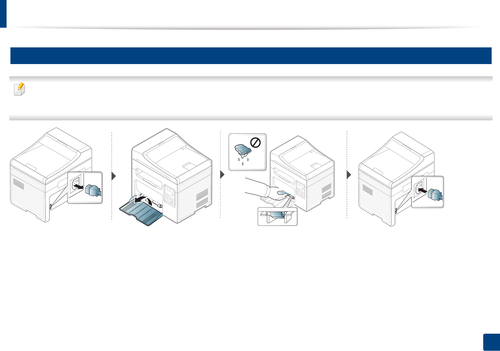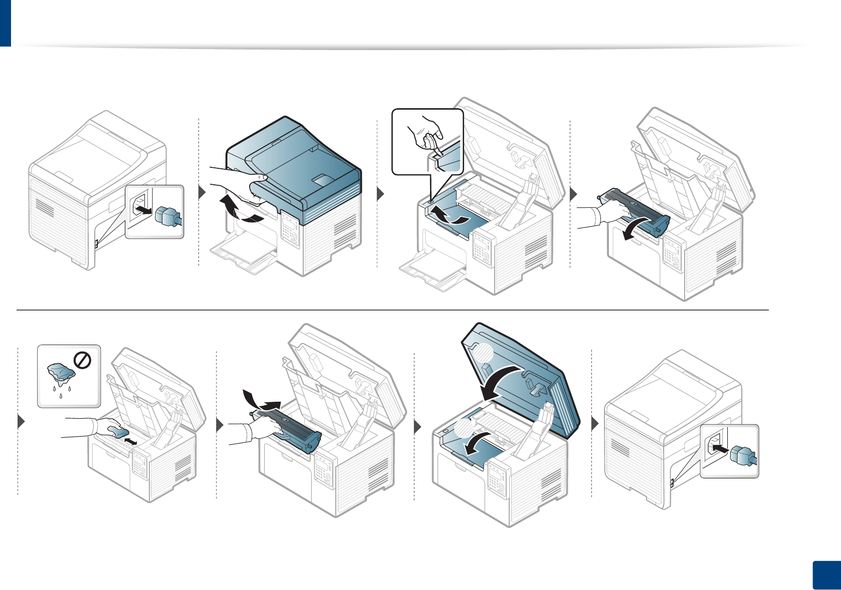 • If your machine or the surrounding area is contaminated with toner, we recommend you use a cloth or tissue dampened with water to clean it. If you use a vacuum