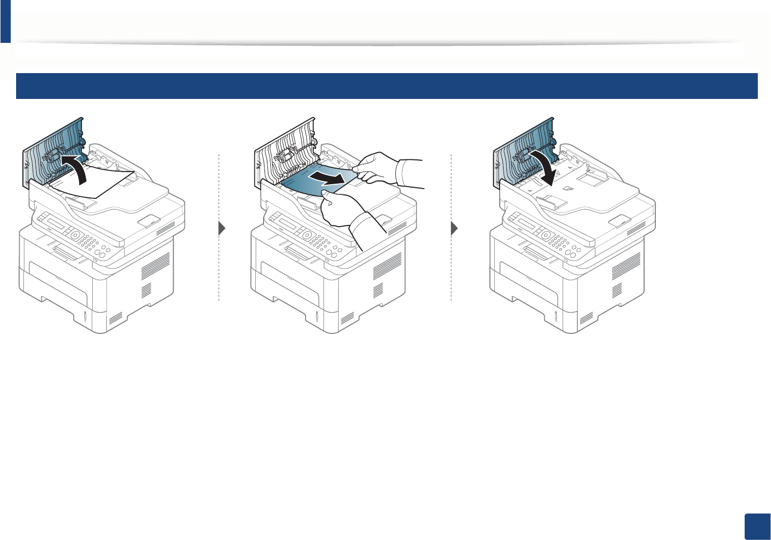 To avoid tearing the document, remove the jammed document slowly and carefully.