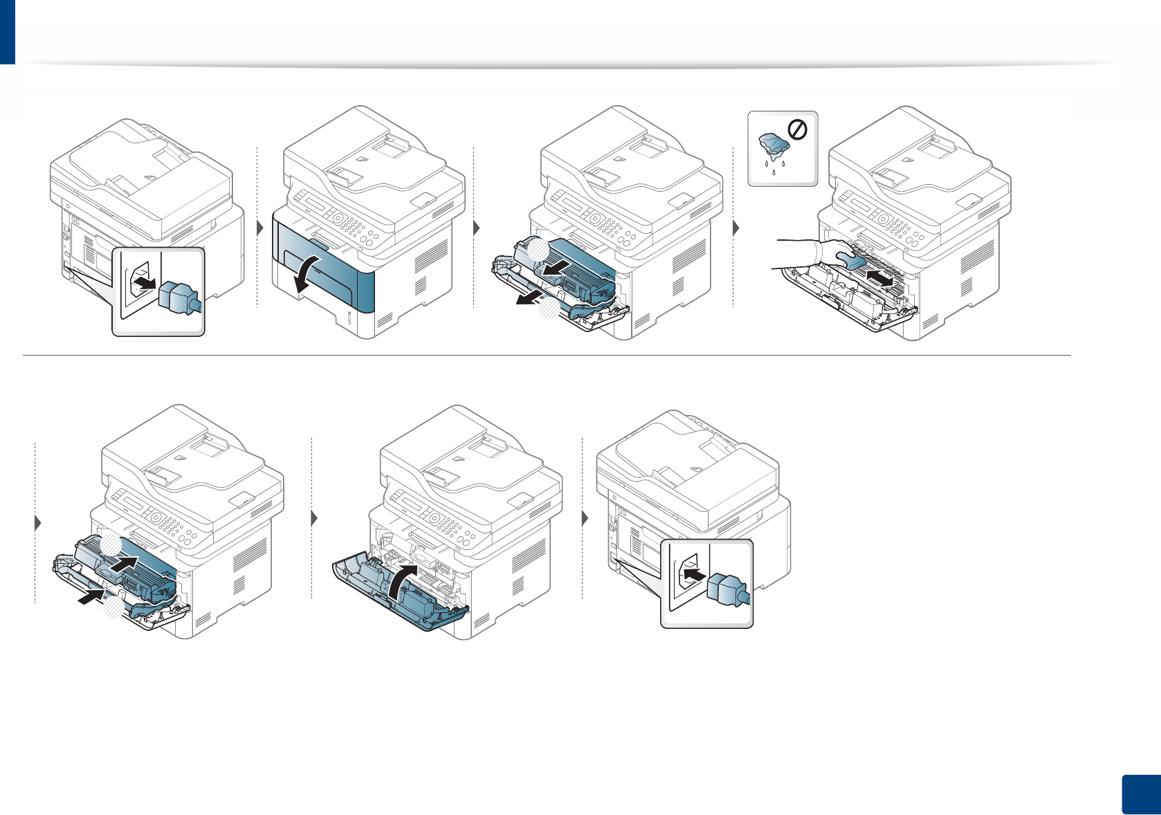 • If toner gets on your clothing, wipe it off with a dry cloth and wash clothing in cold water. Hot water sets toner into fabric.