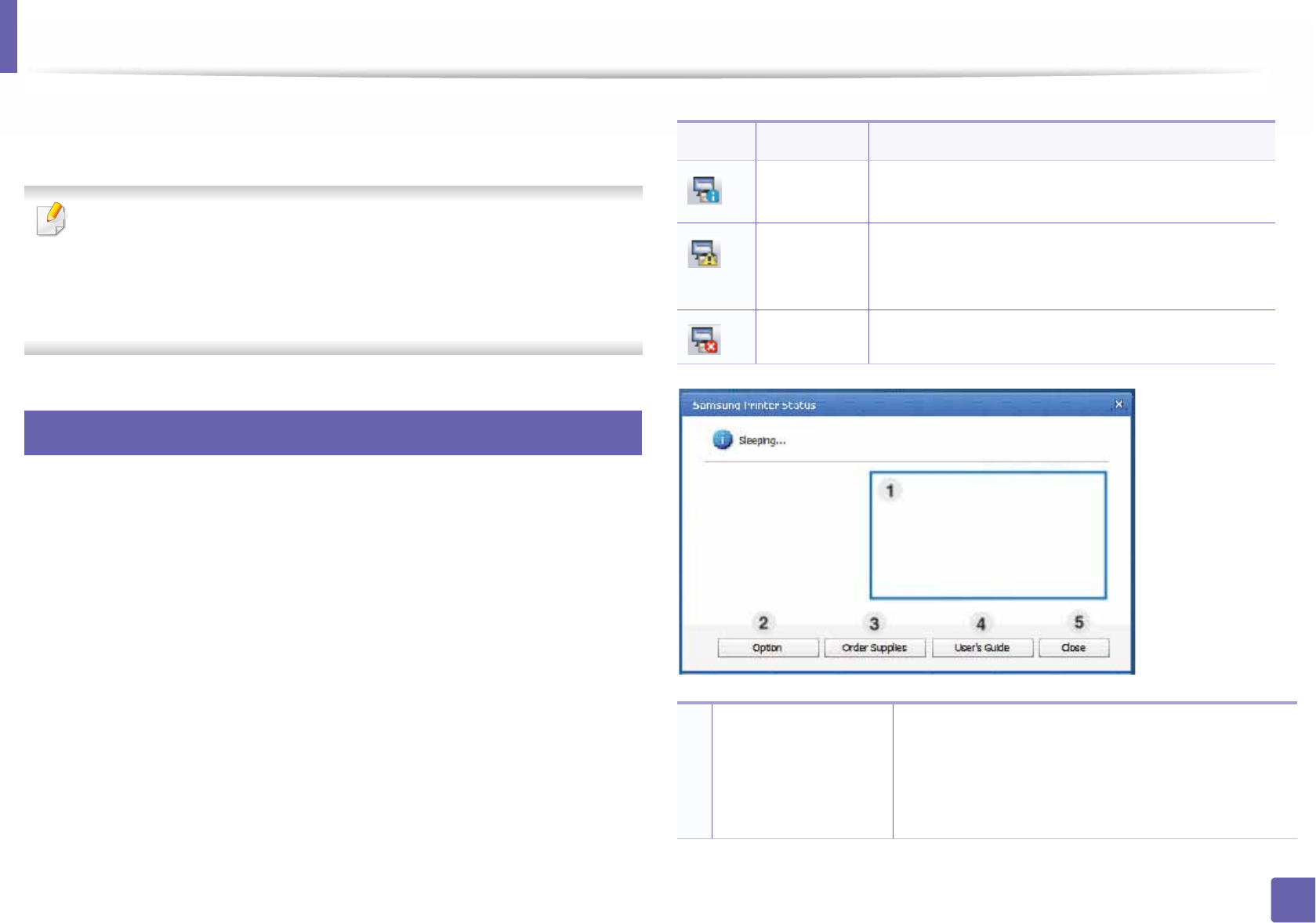 • You also can resolve the error with the guideline from the computers’s Samsung Printing Status program window (see "Using Samsung Printer Status" on page