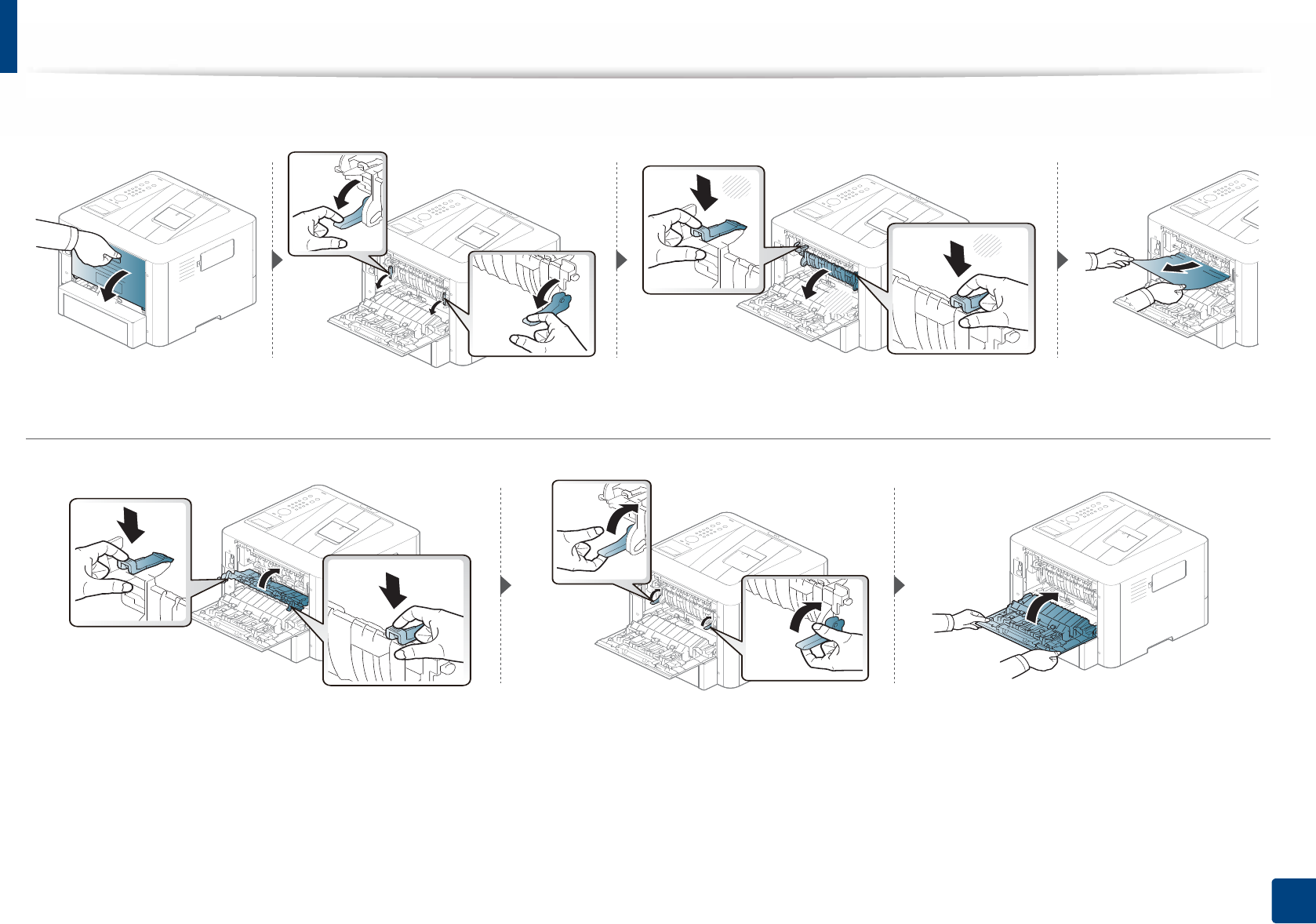 The Fuser area is HOT please wait until device cools down before accessing this area. Turn power off to cool the machine down. Take care when removing paper