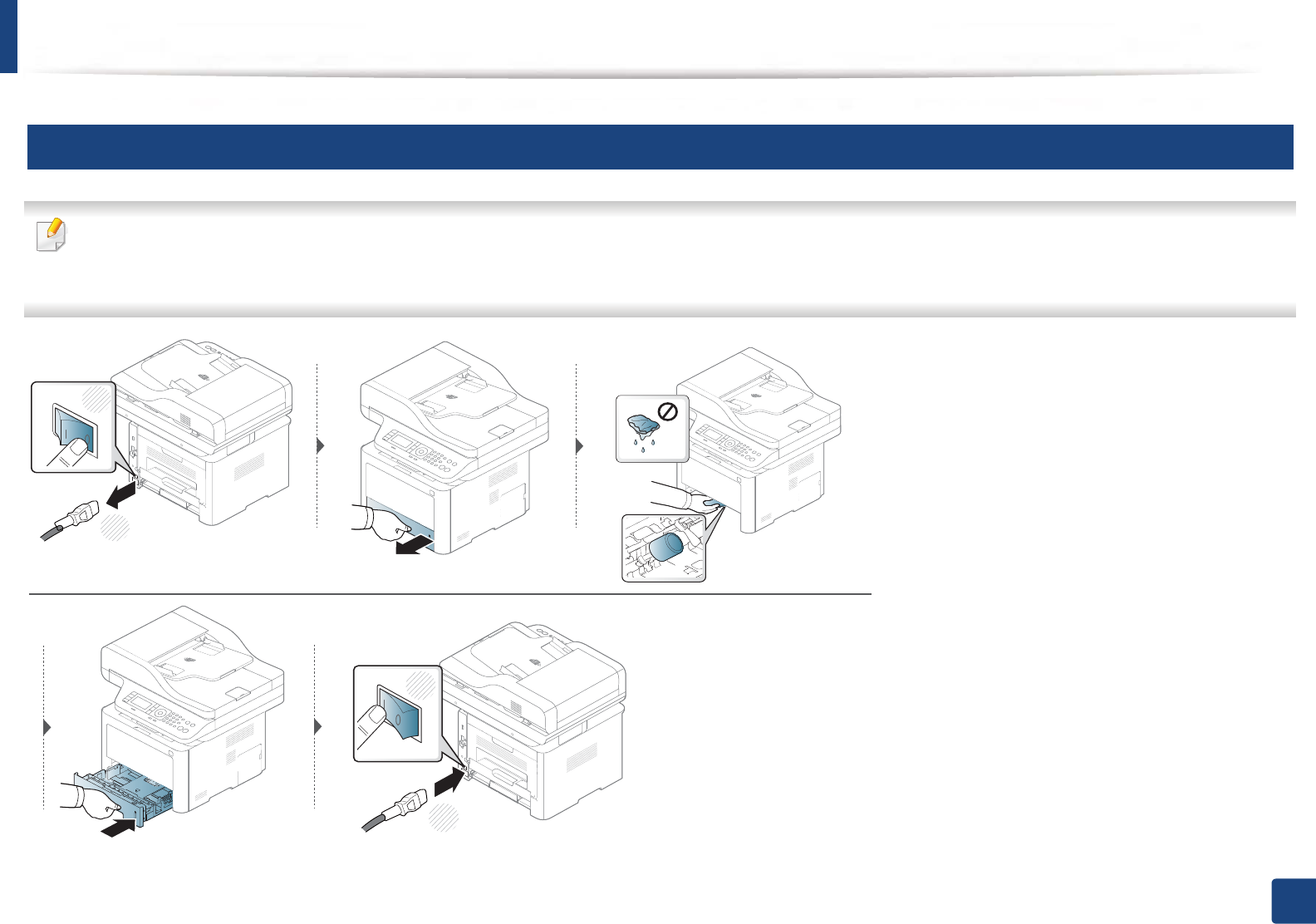 • Turn the machine off and unplug the power cord. Wait for the machine to cool down. If your machine has a power switch, turn the power switch off before