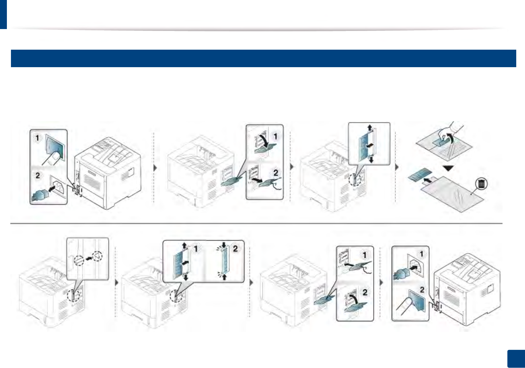 When you install the optional devices such as optional tray, memory, etc, this