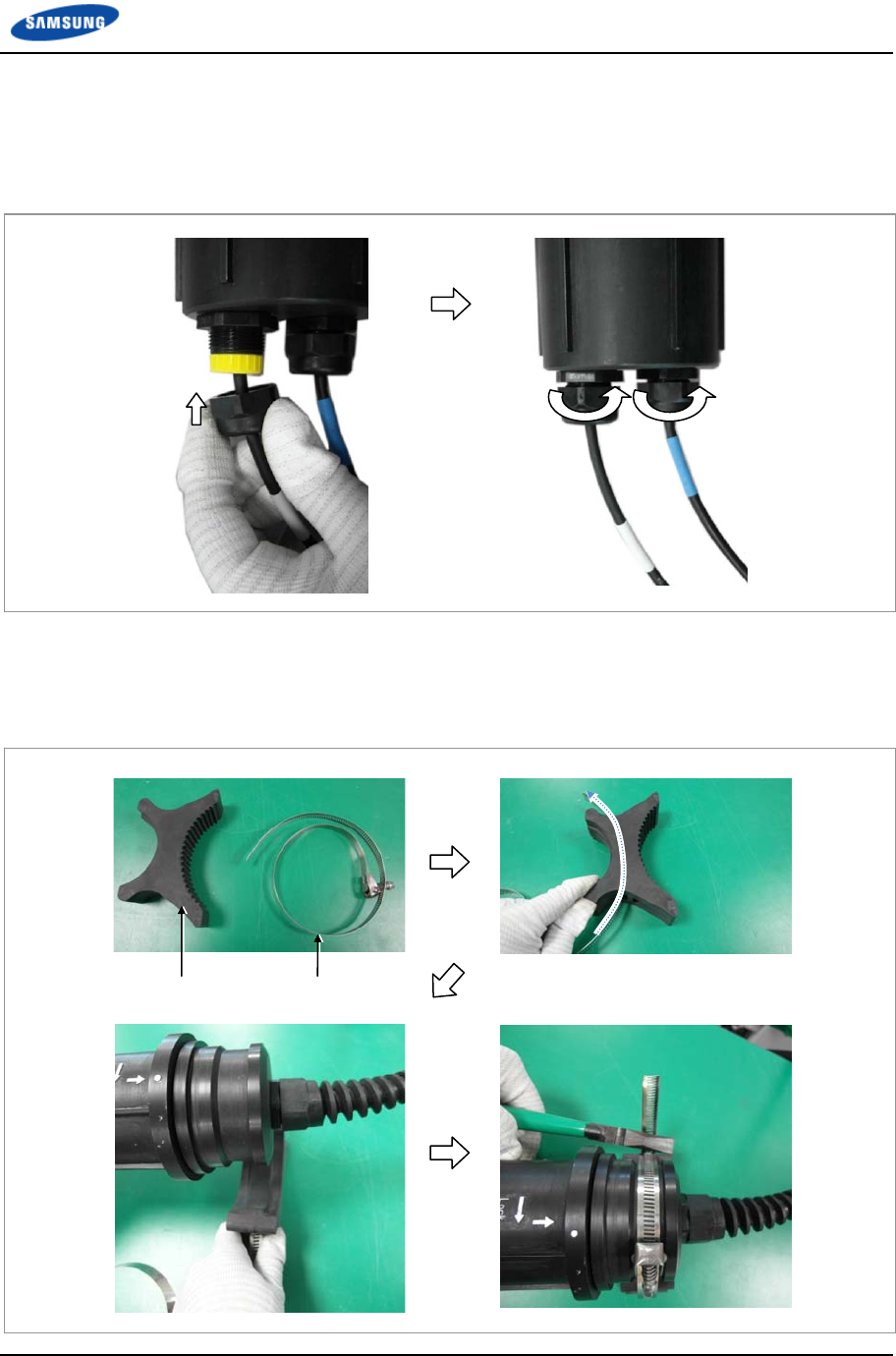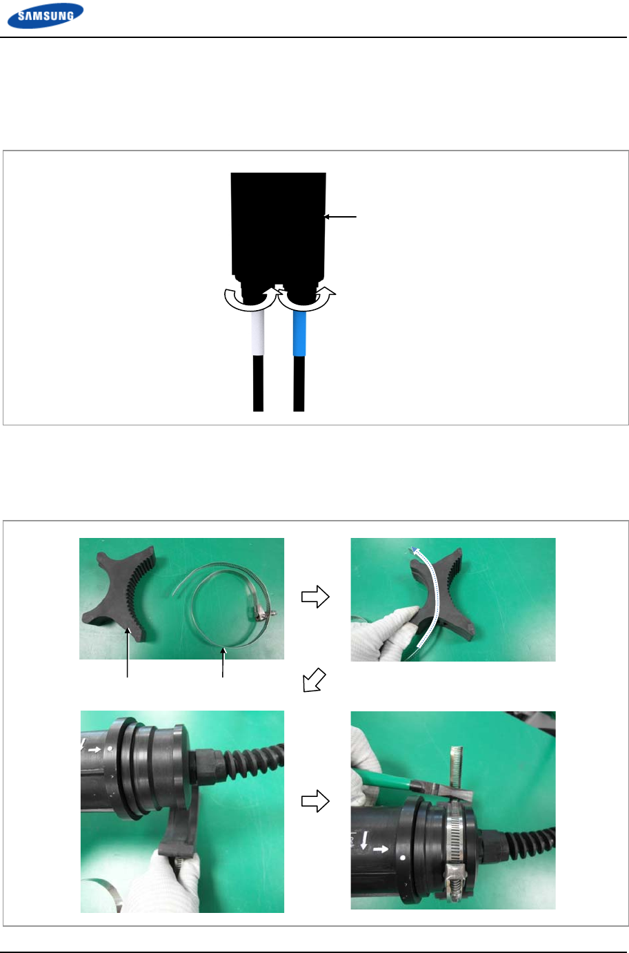 1 After assembling a pressure terminal, move the heat shrink tube, inserted to