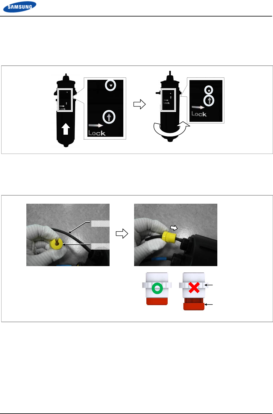 5 Turn the top compressing lever clockwise and then push it down. When the