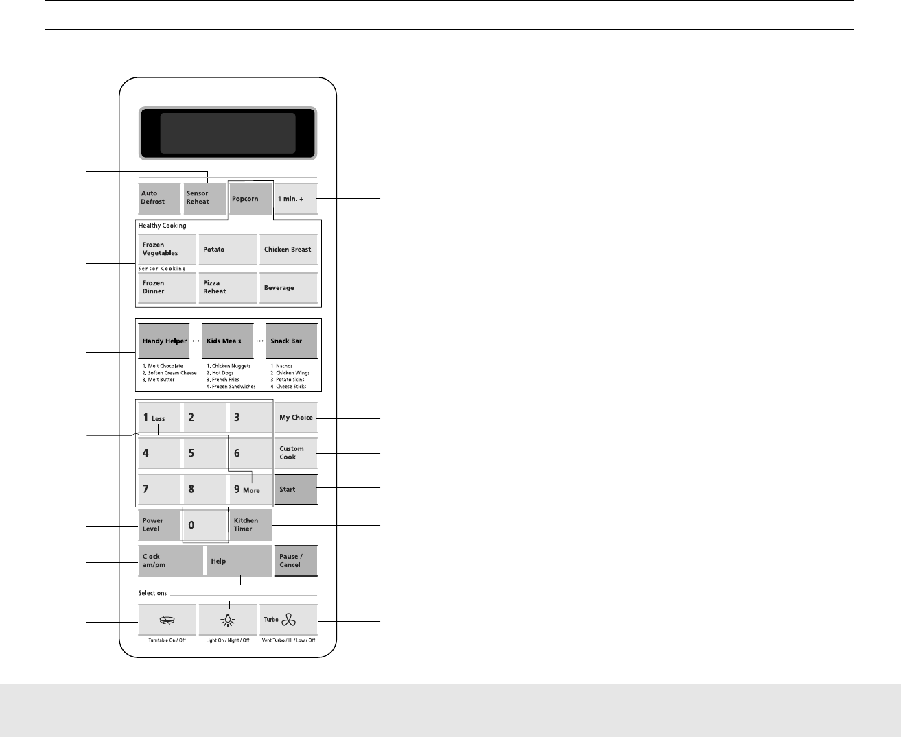 1. Press HANDY HELPER, KIDS MEAL, SNACK