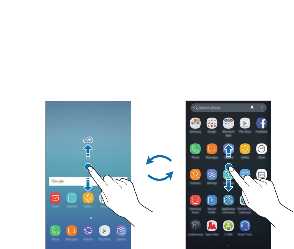 downwards on the Home screen. To return to the Home screen, swipe upwards or downwards