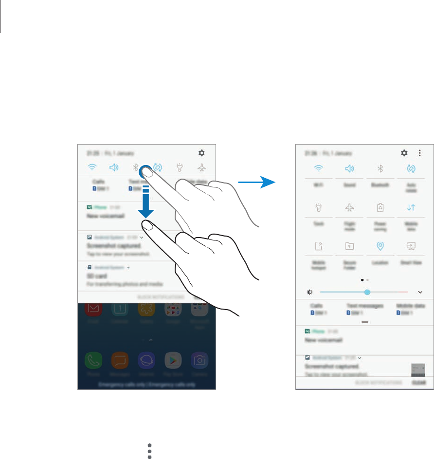 notification panel downwards. Tap next to the brightness adjustment bar and tap the