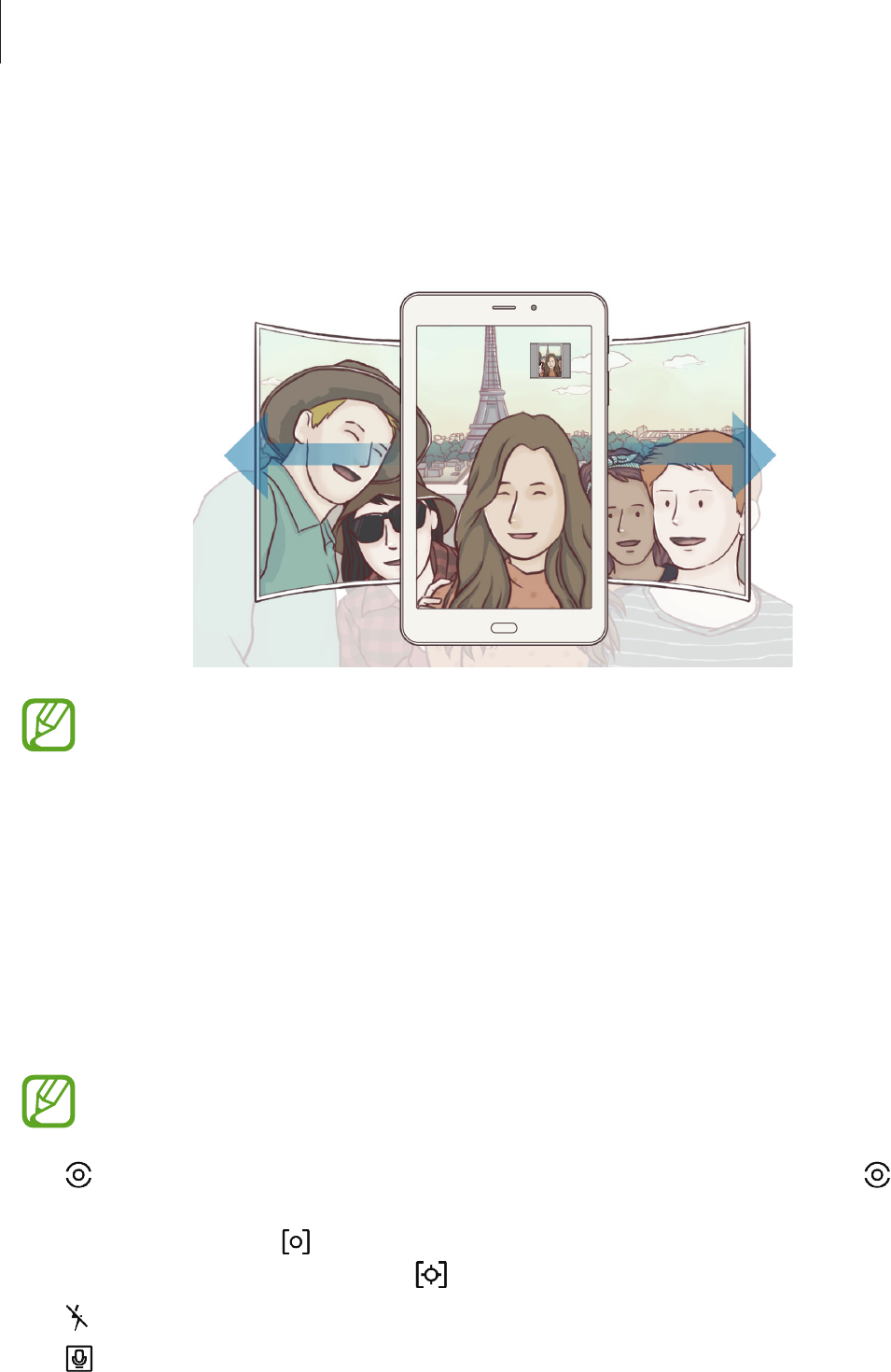 The front camera features a wide-angle lens. Minor distortion may occur in wide-