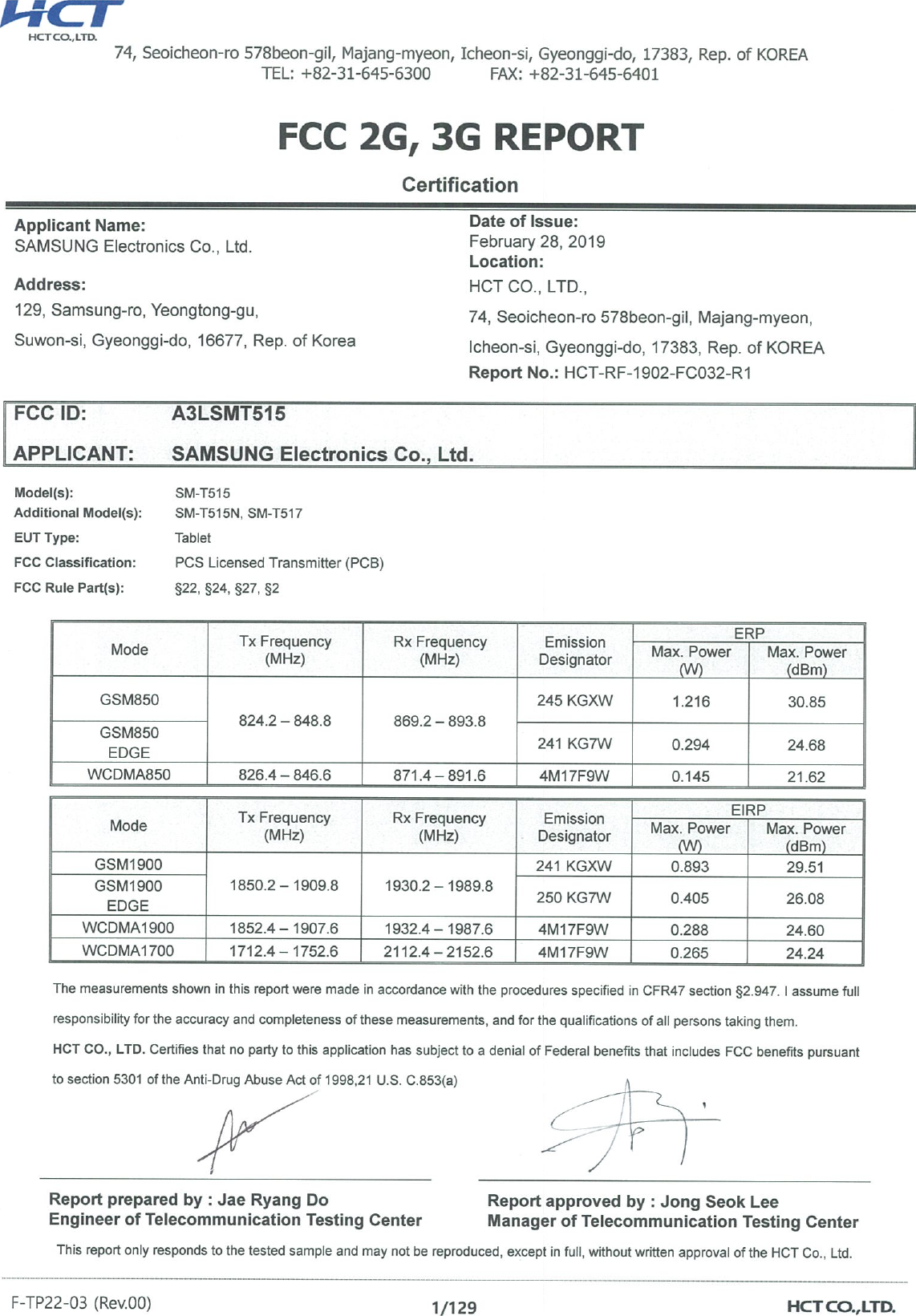 - 2. SAMSUNG SM-T515 RF Test Report_2G 3G_rev01_Part1