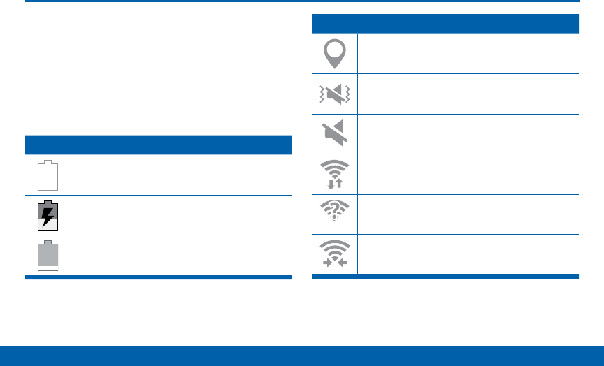 icons and notification icons used on the Status