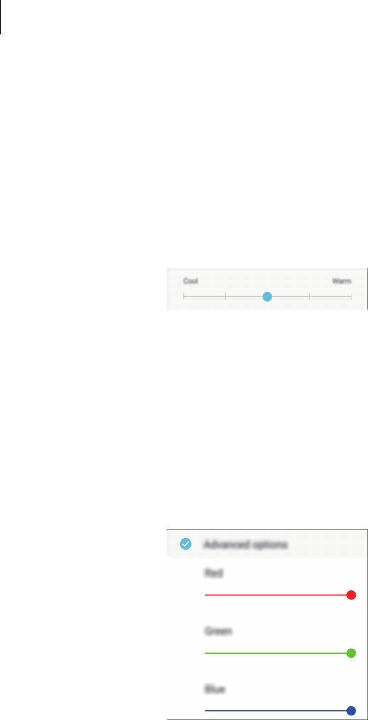 can set the colour temperature. Tap and drag your finger on the colour temperature
