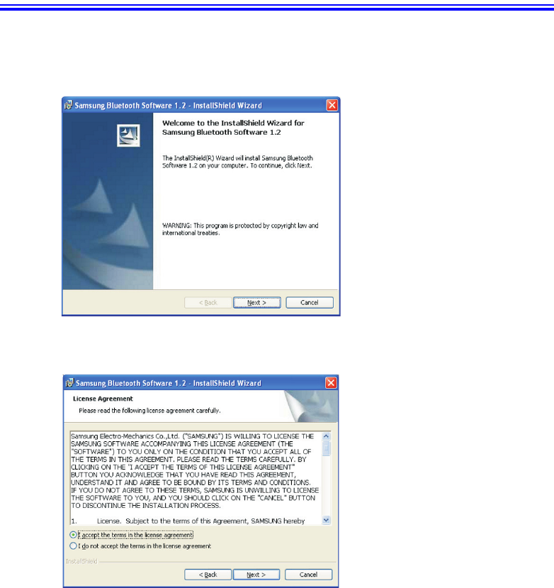 1. Insert the Samsung Bluetooth Installation CD into CD-ROM drive, the Install program