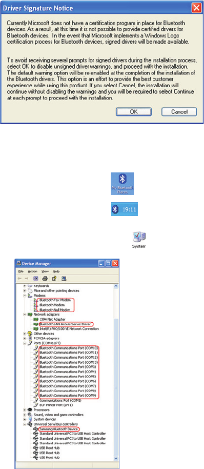7. If Samsung Bluetooth software is installed correctly, you will find following icons.