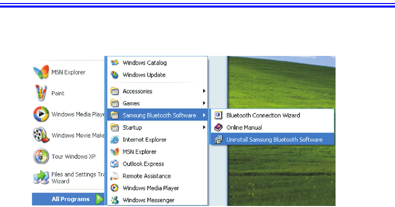 To delete Samsung Bluetooth Software, use the uninstall menu.
