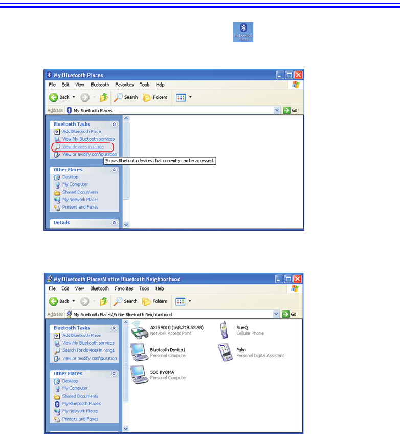 1. Double click the “My Bluetooth Places” icon, , on your desktop, and click “View