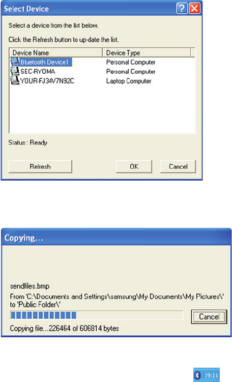 3) After selecting the appropriate Bluetooth device, click “OK” to start sending the