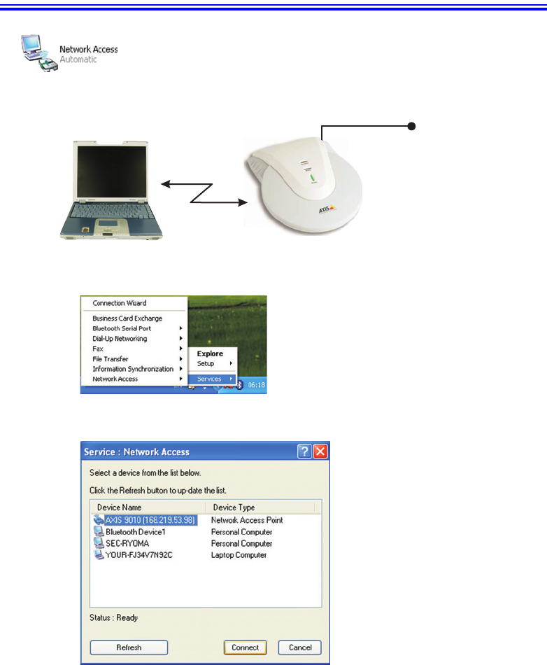 1) Choose the “Service > Network Access” menu of Samsung Bluetooth Tray icon.