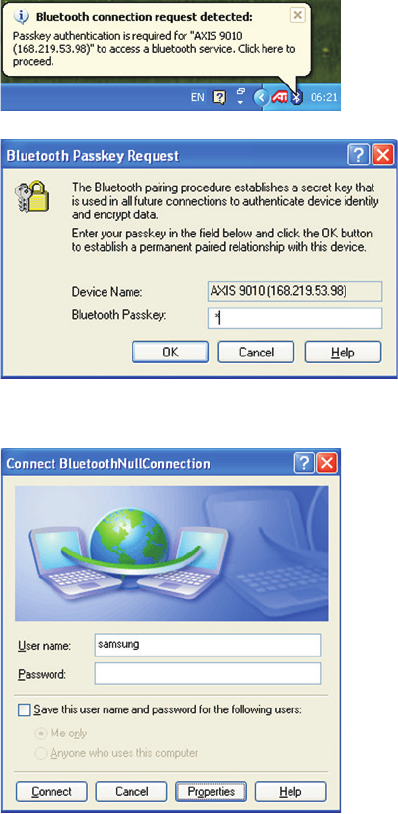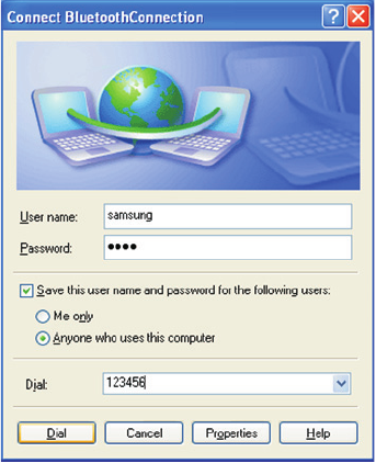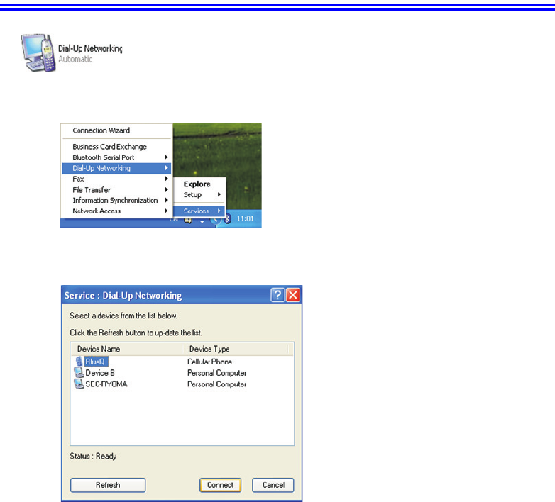 1. Select the “Services > Dial-Up Networking” menu of Samsung Bluetooth Tray icon.