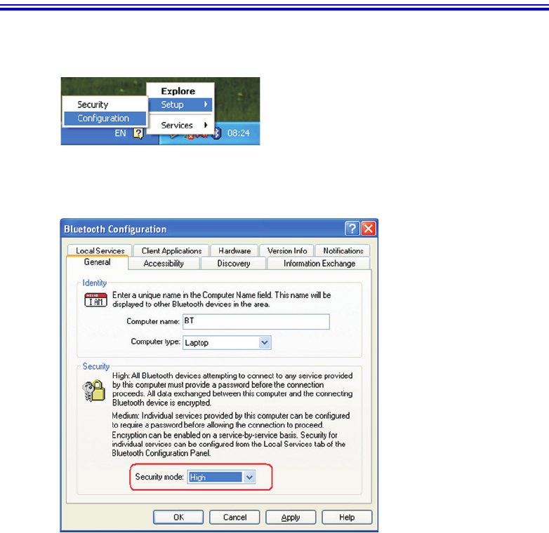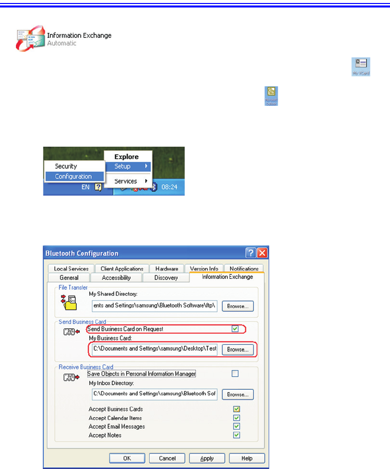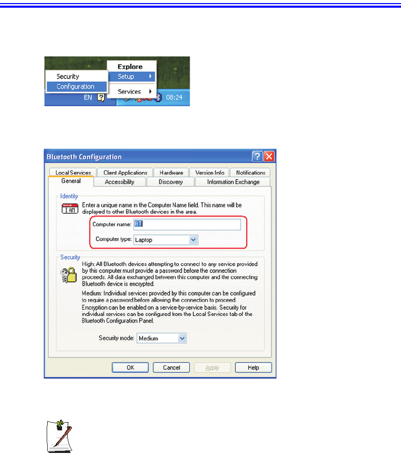 1. Select the “Setup > Configuration” menu of Samsung Bluetooth Tray Icon.