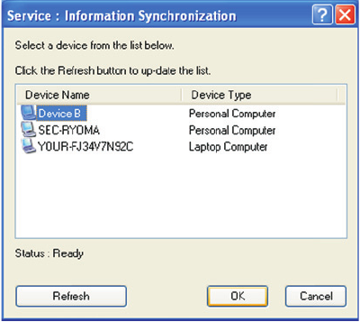 6. Now, you are ready to synchronize your PIMS data with another Bluetooth device.