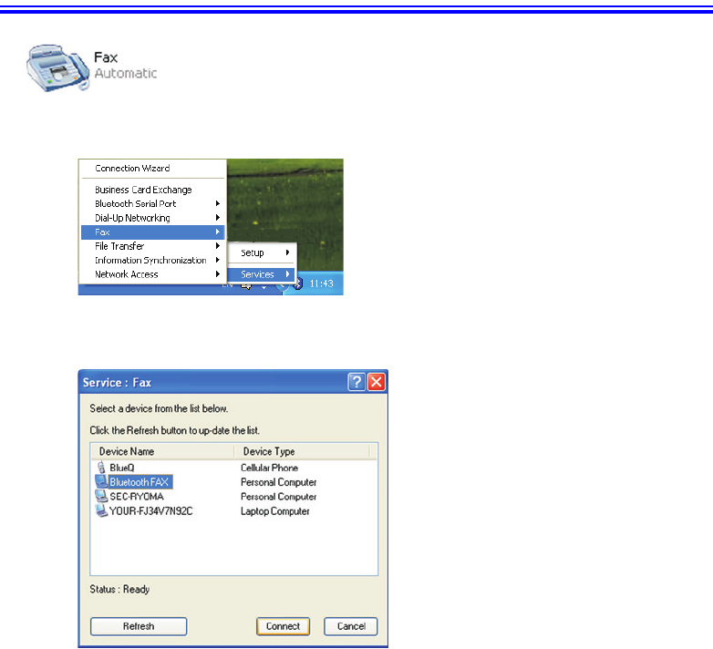 2. Select a Bluetooth fax device and click the “Connect” button.