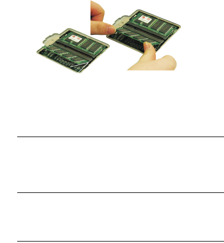 6. Push the memory module into the slot at a slight angle (~45o) until the connectors