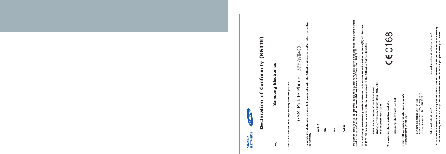 Samsung Electronics Co SPHW8400 PCS GSM Phone with Bluetooth User Manual