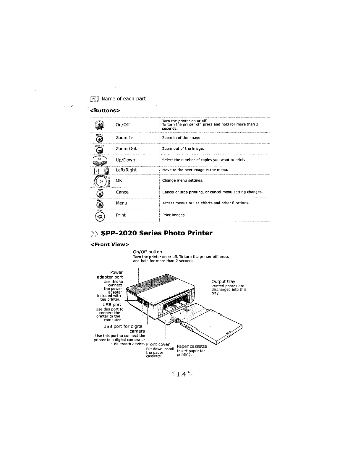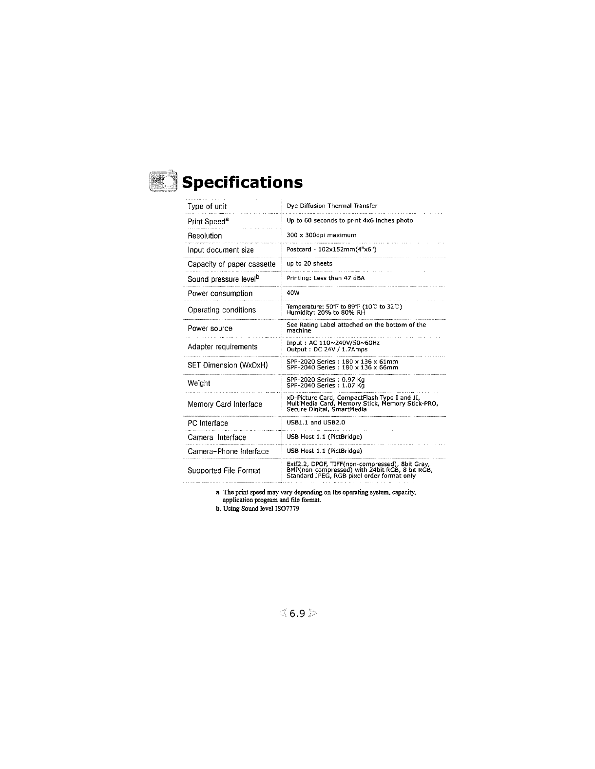 Samsung Electronics Co SPP-2020 Photo Printer User Manual