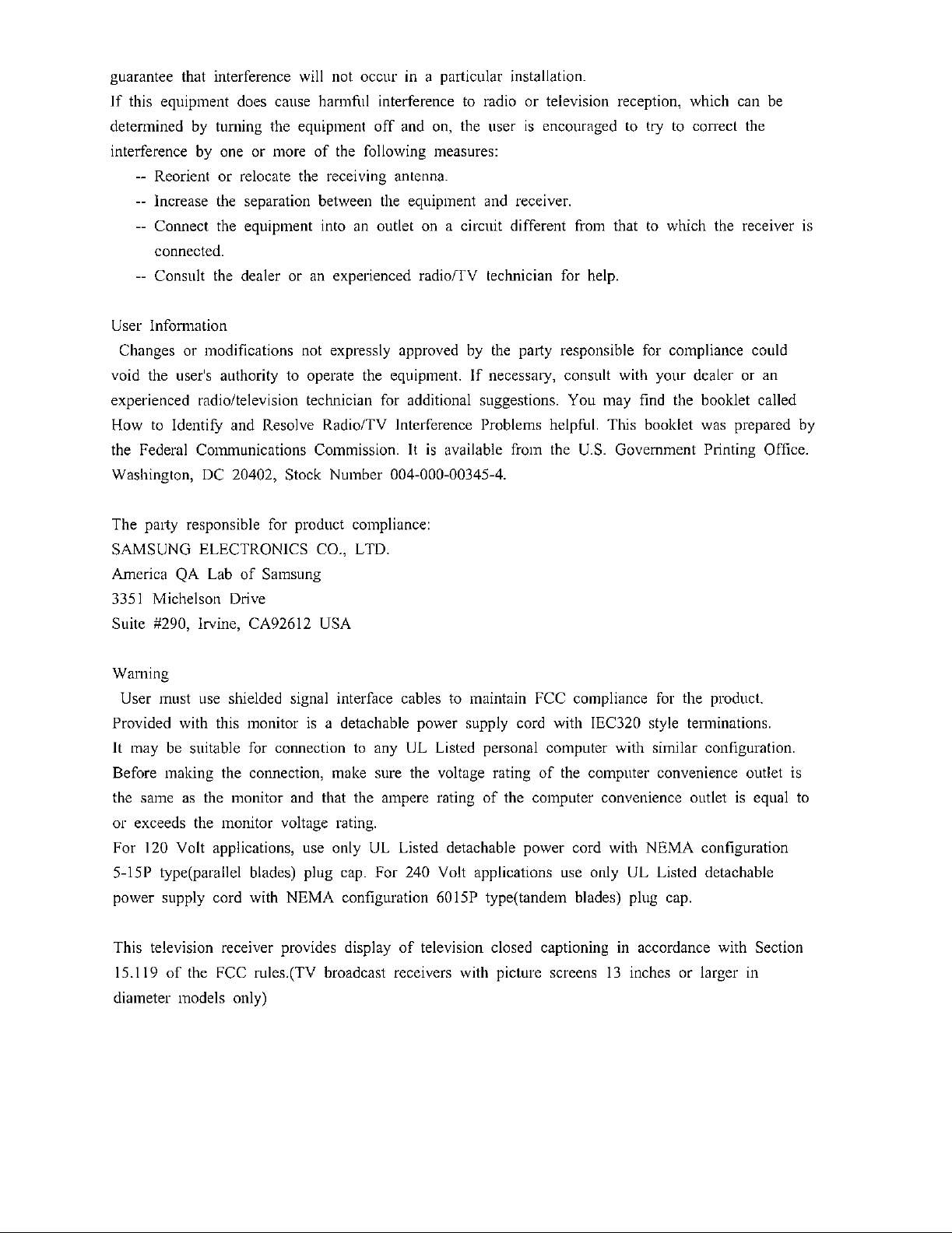 Samsung Electronics Co Ltd 42-inch PDP TV Monitor Users Manual