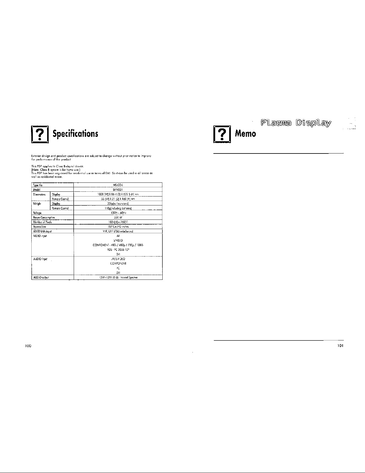 Samsung Electronics Co SPP4231 42-inch PDP TV Monitor User Manual